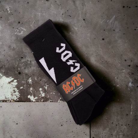 €10,95Grundpreis /Nicht verfügbar Socken AC/DC Fanartikel Blitz Strümpfe schwarz mit Geschenkbox in 40-46 im Paar