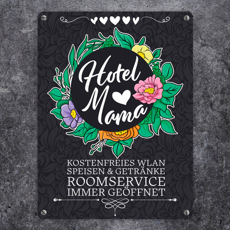Ab €12,95Grundpreis /Nicht verfügbarAuf LagerHotel Mama Metallschild mit floralen Mustern und Aufschriften