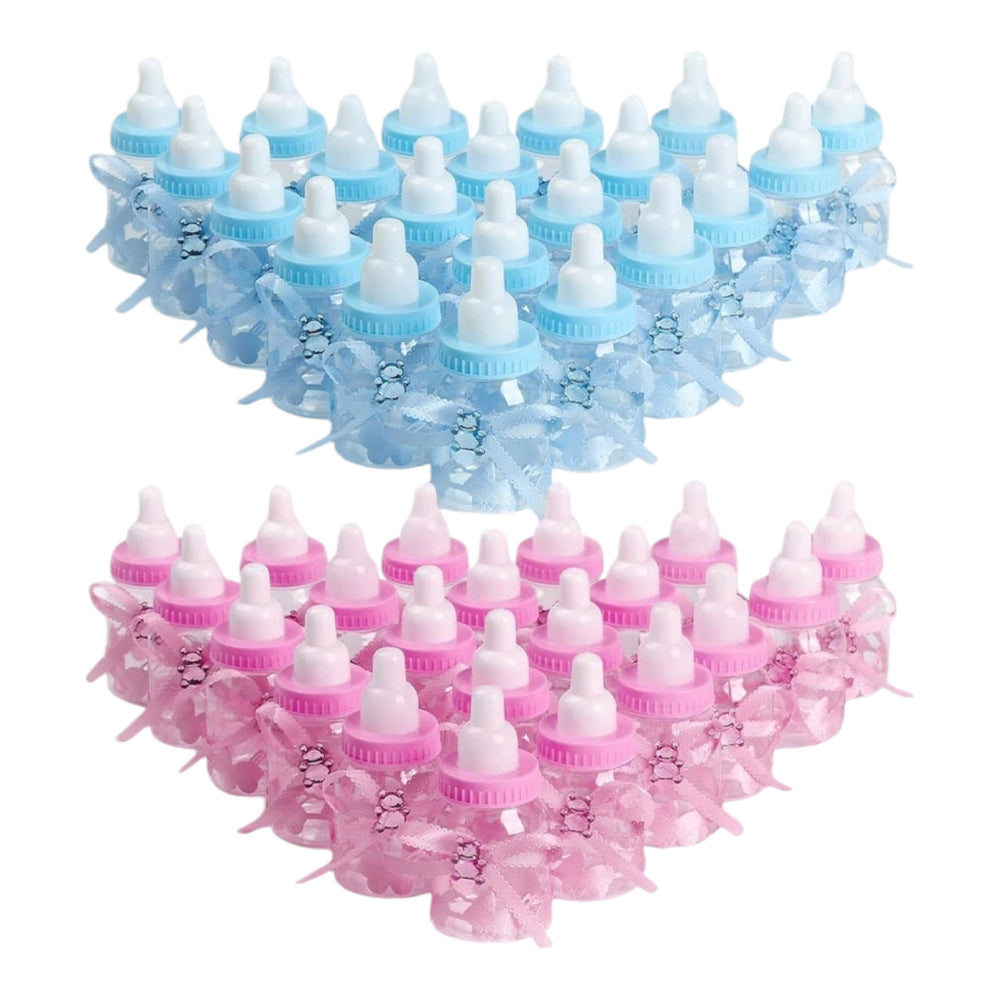 - Das Set besteht aus einer großen, als Spardose nutzbaren Flasche und 30 kleinen Flaschen mit babyblauen Deckeln. Die durchsichtigen Flaschen mit Stoffverzierungen eignen sich perfekt zum Befüllen mit Bonbons oder Minzbonbons. Diese süßen Fläschchen sind ein echter Hingucker!