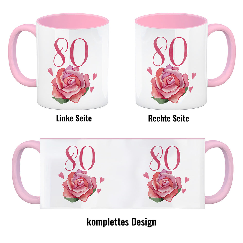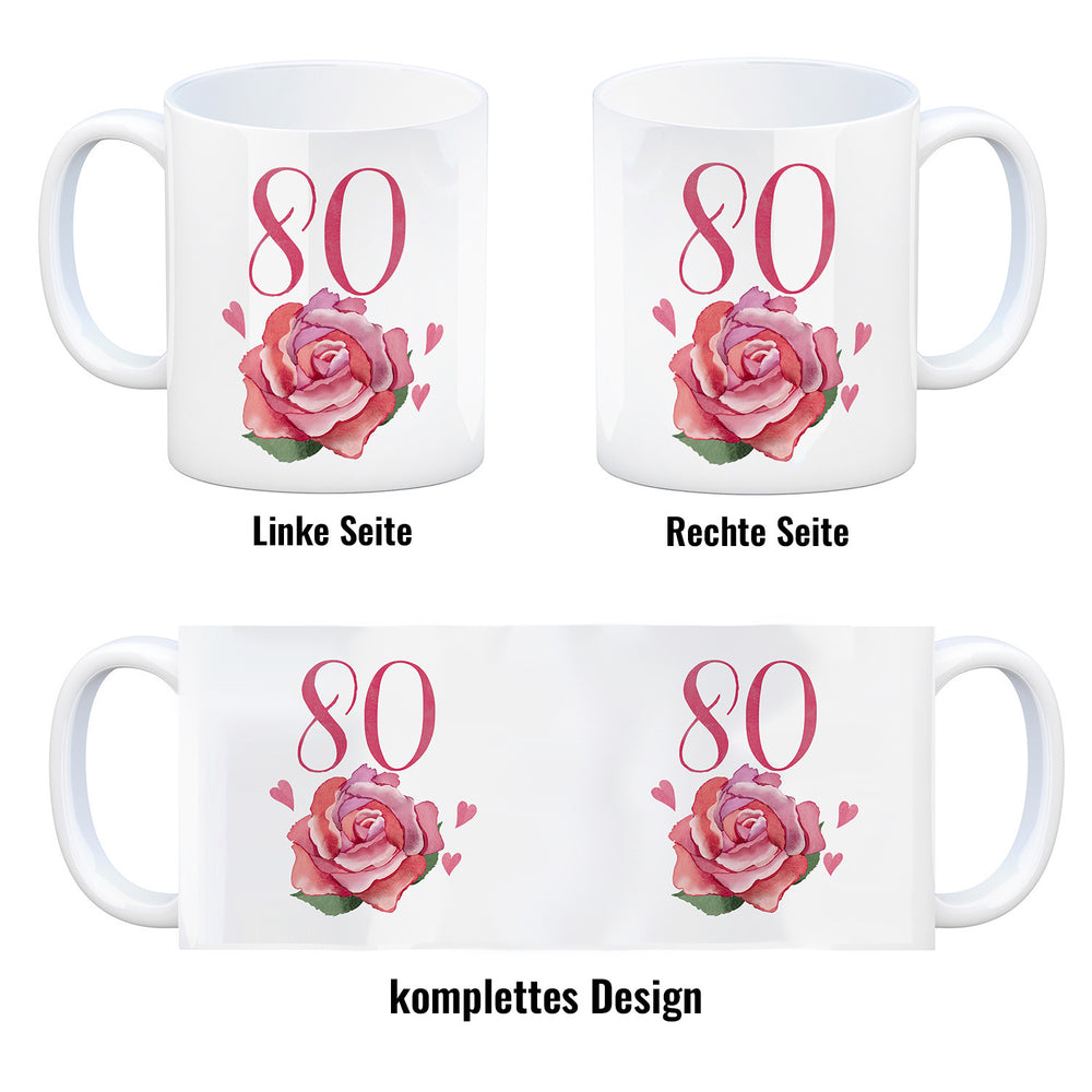 80. Geburtstag Rose Kaffeebecher