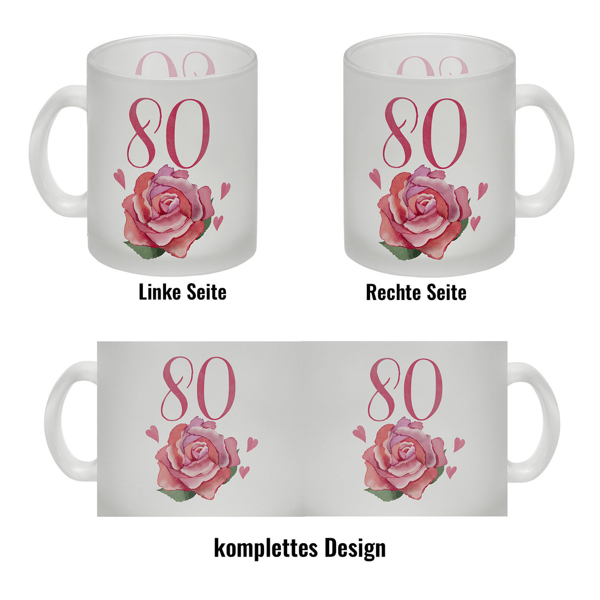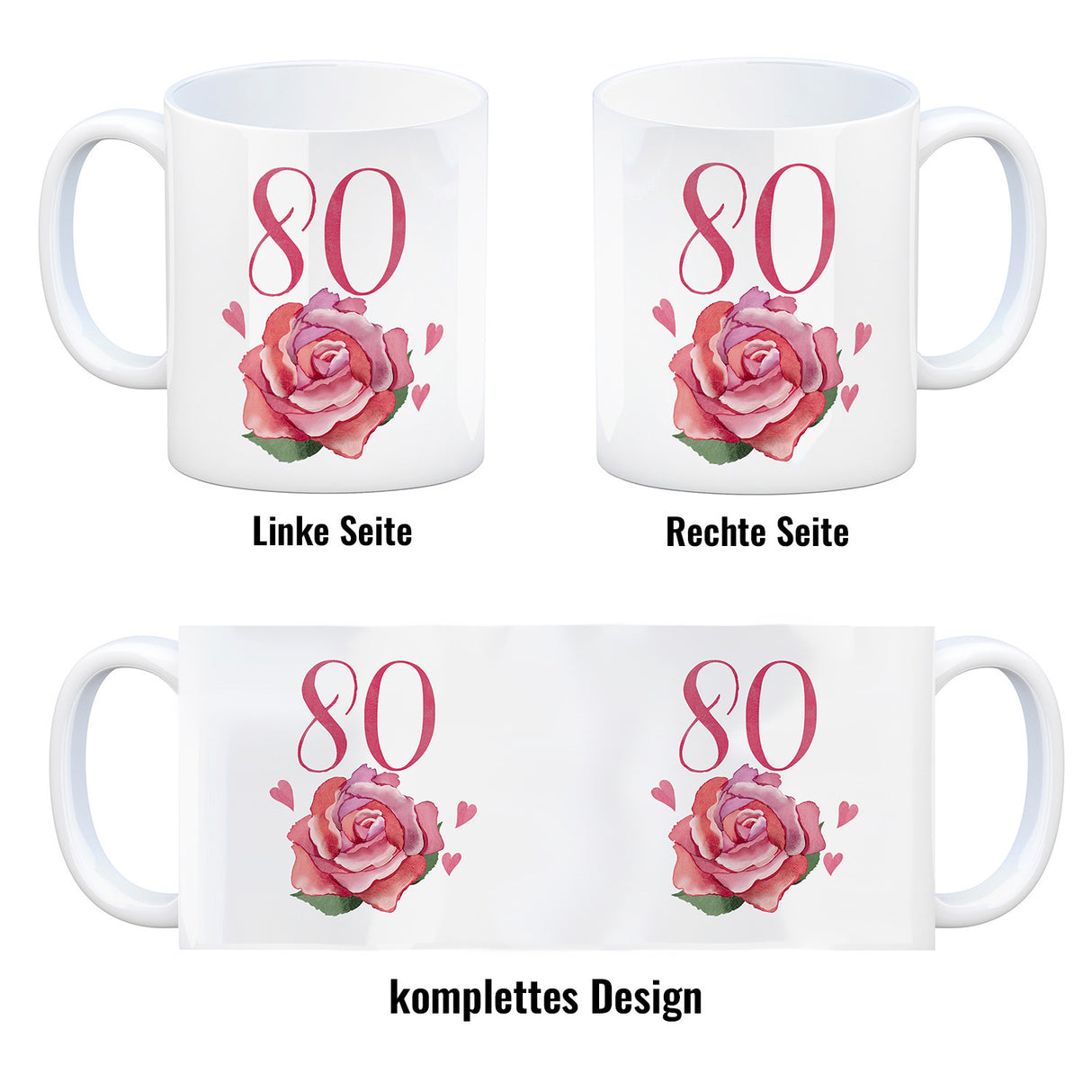 - 1x 80. Geburtstag Rose Kaffeebecher in der gewählten Ausführung
