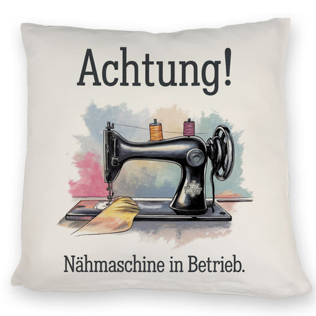 Nähmaschine in Aktion Kissen Achtung In Betrieb