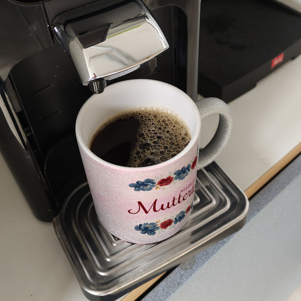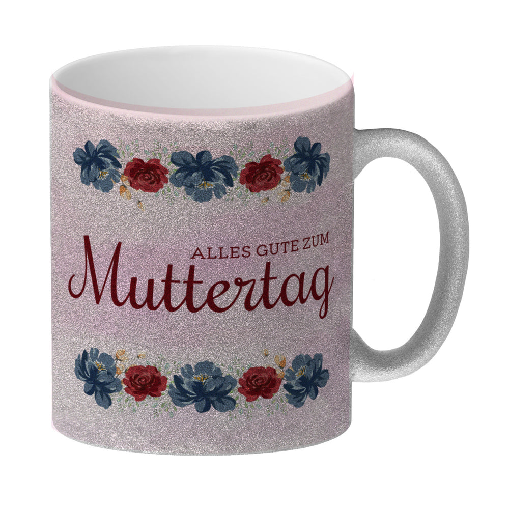 Der Alles Gute zum Muttertag Kaffeebecher ist das perfekte Geschenk für Deine liebste Mama. Mit seinem großzügigen Fassungsvermögen von 330 ml und unterschiedlichen Varianten, wie weißer Standardtasse, mit farbigem Henkel und Innenseite, edler Glastasse oder exklusiver Silberedition mit Glitzereffekt, ist er ein ganz besonderes Präsent. Dank des Spruches „Alles Gute zum Muttertag“ auf der Tasse wird Deine Mutti immer daran erinnert, warum sie Dir so viel bedeutet. Dieser Kaffeebecher wurde in Handarbeit in unserer Tassen-Manufaktur in Deutschland hergestellt und ist spülmaschinengeeignet. Schenke Deiner Mama zum Muttertag dieses einzigartige Geschenk und bereite ihr damit eine große Freude.