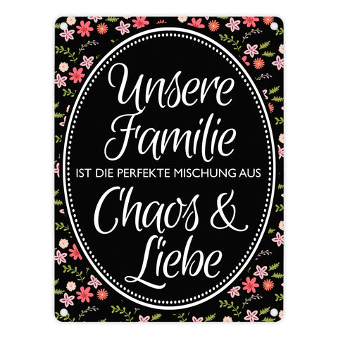 Metallschild mit Spruch: Unsere Familie ist die perfekte ...