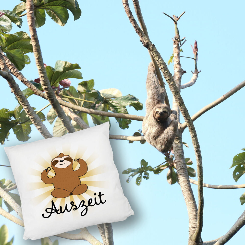 - 1x Auszeit Faultier Kissen in der gewählten Ausführung