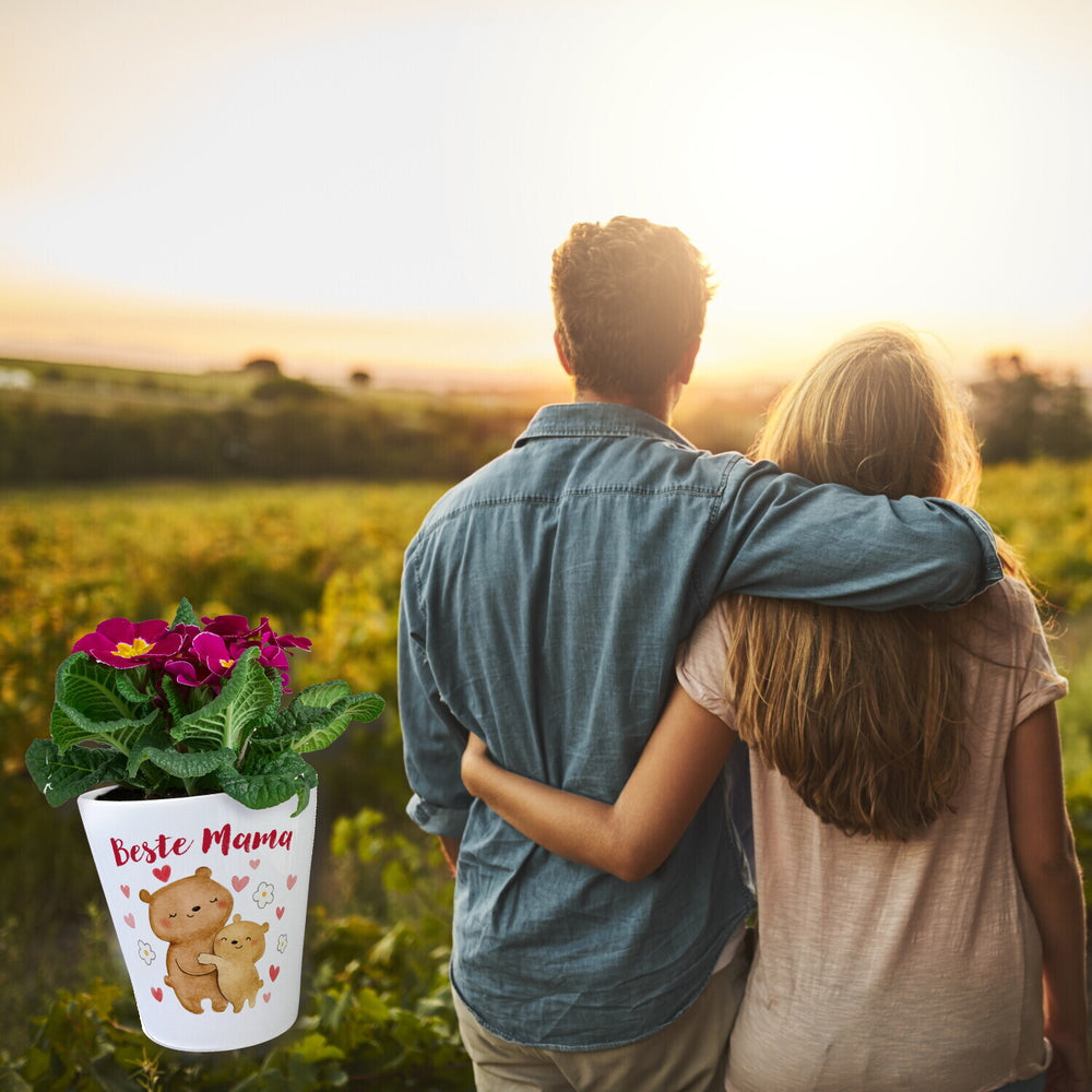 Bären Mutter und Kind Blumentopf mit Spruch Beste Mama