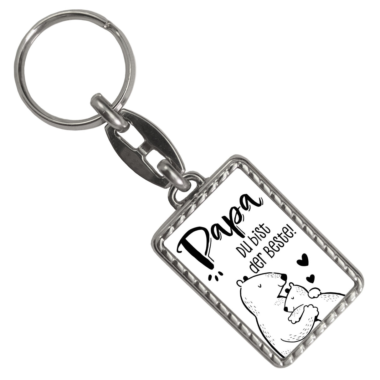 - Stellt euch vor, ein brummiger Bären Papa kuschelt mit seinem süßen Bären-Kind – genau das zeigt unser Schlüsselanhänger! So wird jeder Schlüsselbund zum Familienschatz. Der Spruch "Papa, du bist der Beste!" gibt dem Ganzen den perfekten Liebes-Knuff. Es brüllt förmlich Vatertags-Liebe!