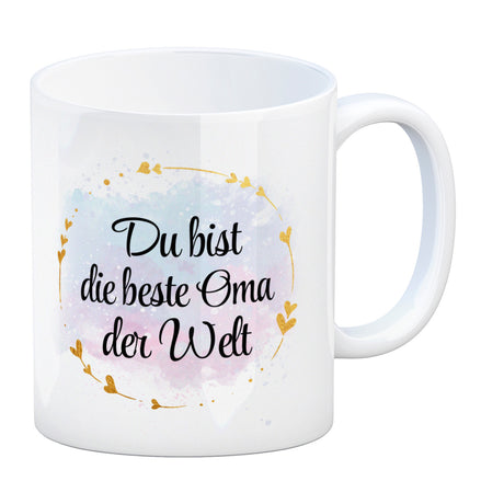 Du bist die beste Oma der Welt Kaffeebecher mit goldenen Verzierungen