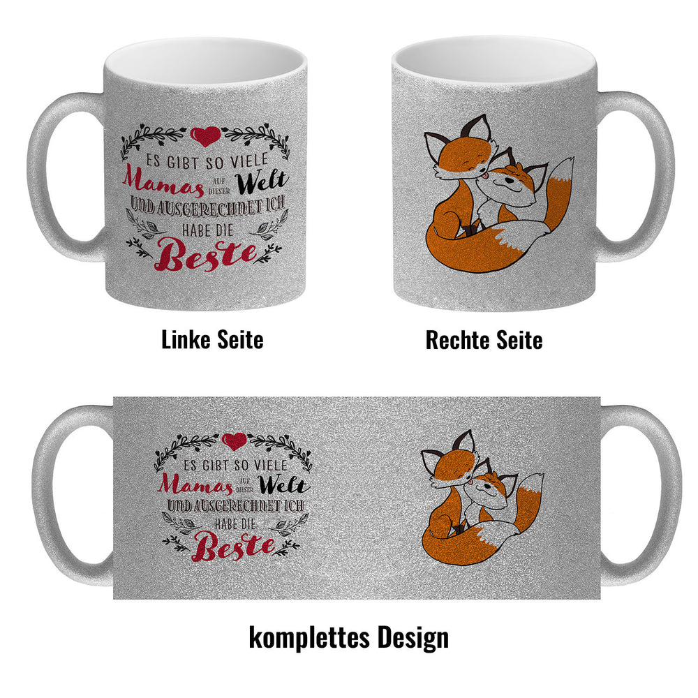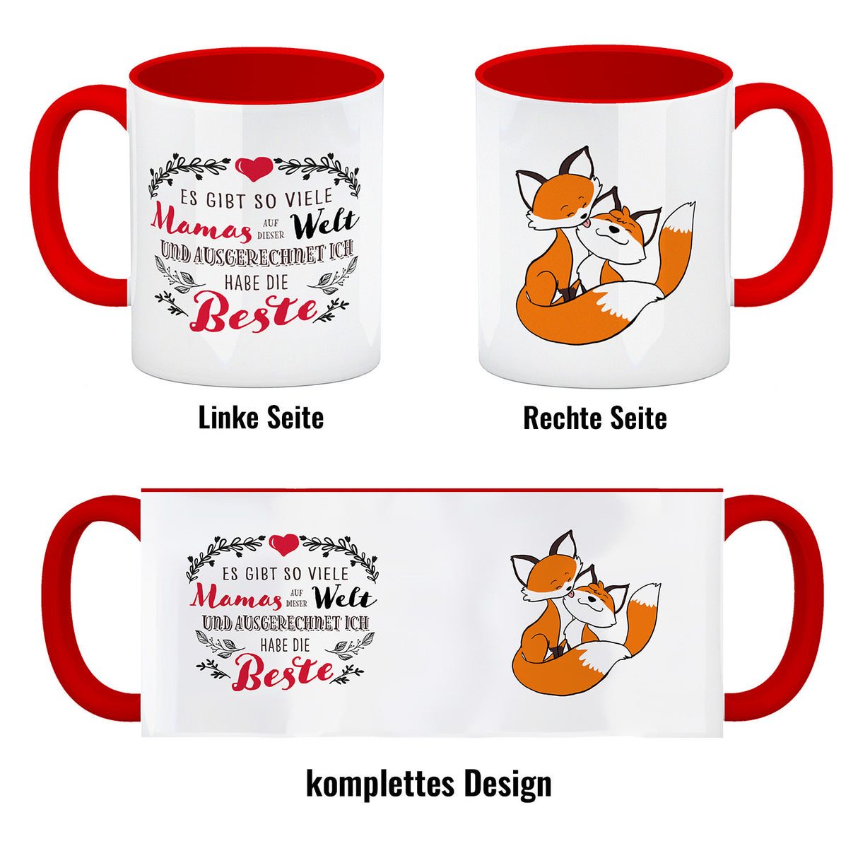 - 1x Beste Mama der Welt Kaffeebecher mit Füchsen in der gewählten Ausführung