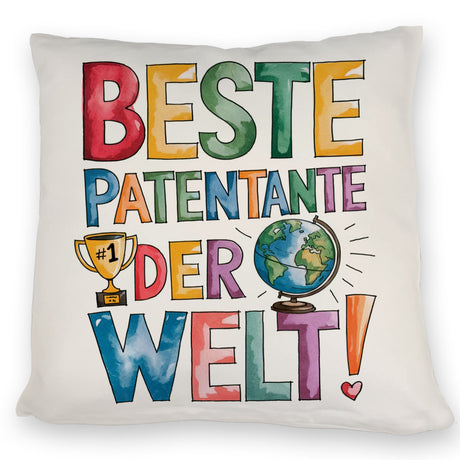 Beste Patentante der Welt Kissen goldener Pokal Globus