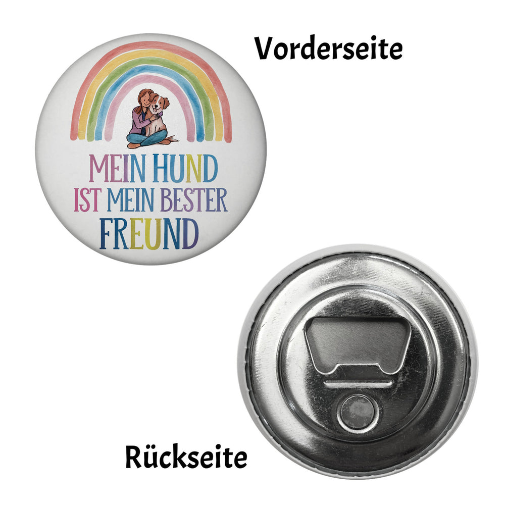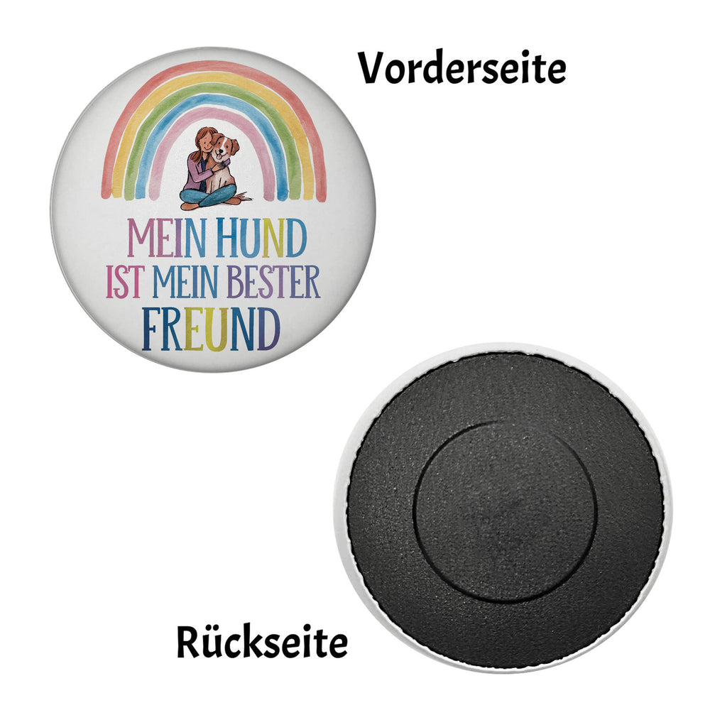 - 1x Bester Freund Magnet - Frau umarmt Hund unter Regenbogen in der gewählten Ausführung