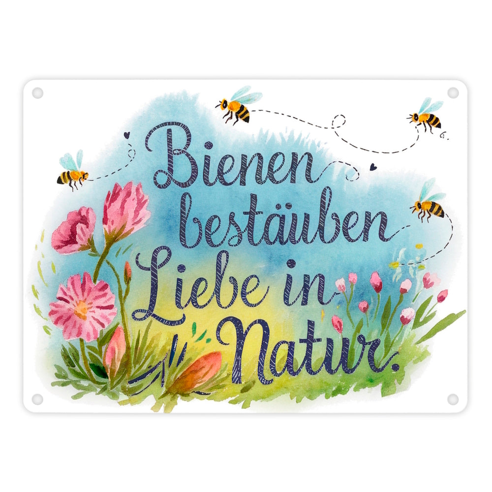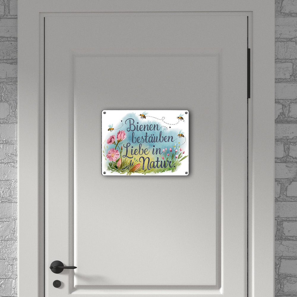 Bienen bestäuben Liebe in die Natur Metallschild in 15x20 cm
