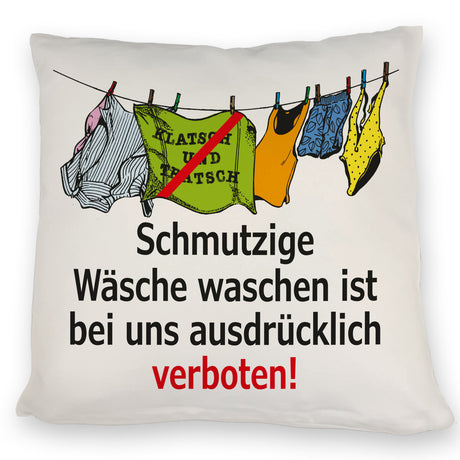 Klatsch und Tratsch Kissen mit Spruch: Schmutzige Wäsche waschen verboten!