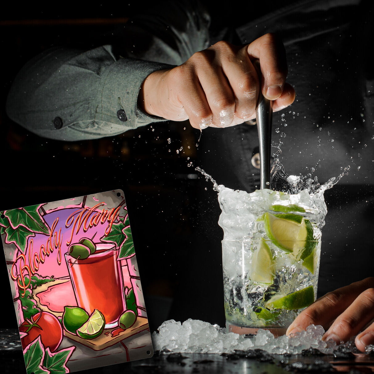 - 1x Bloody Mary Metallschild - The Cocktail Series - mit Retro Drink Motiv in der gewählten Größe
