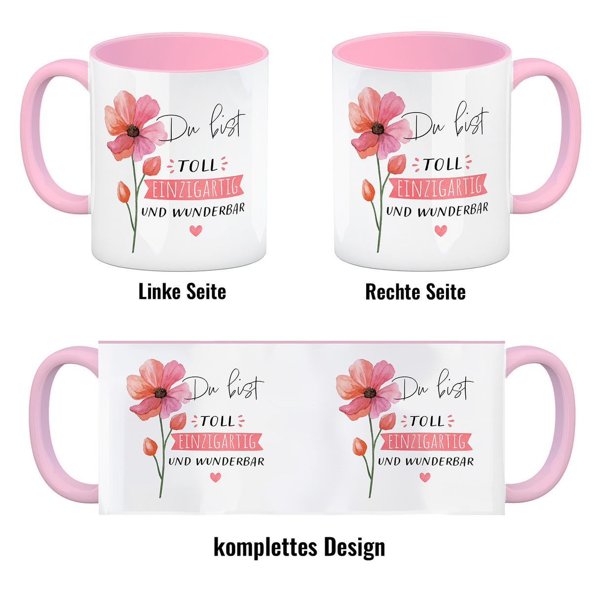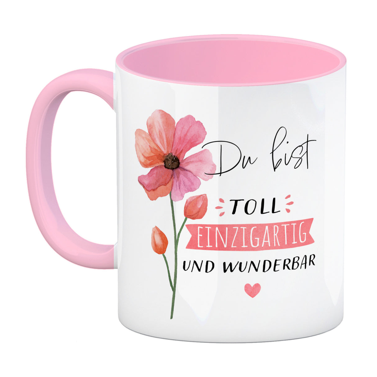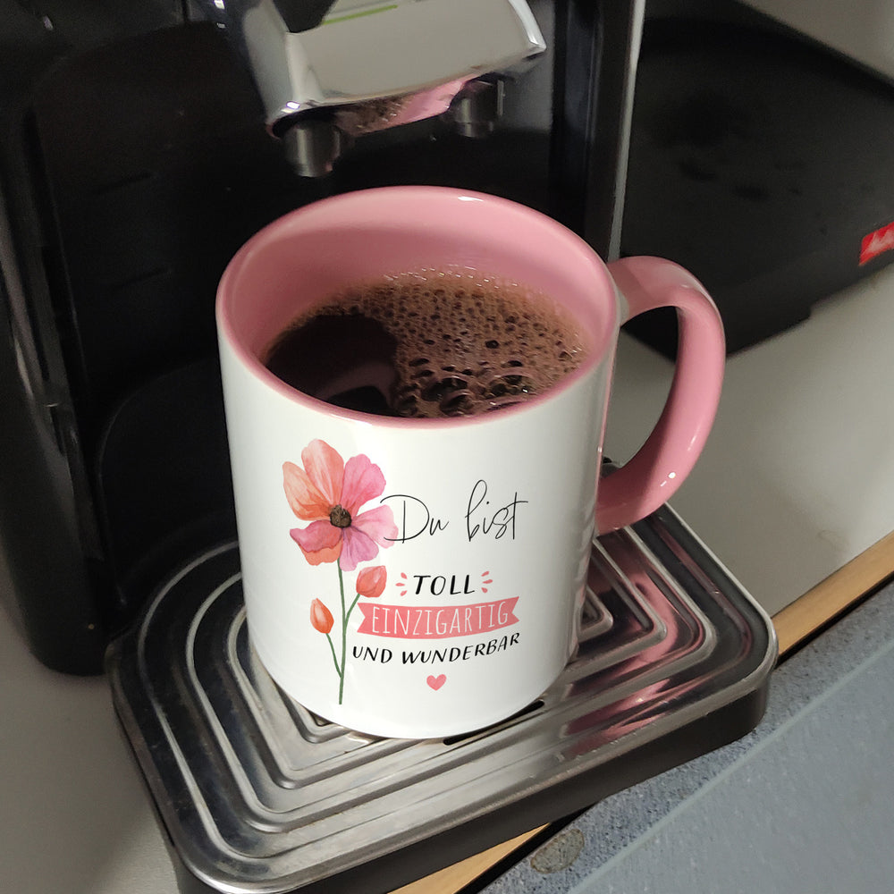 Blume Kaffeebecher mit Spruch Du bist toll einzigartig und wunderbar