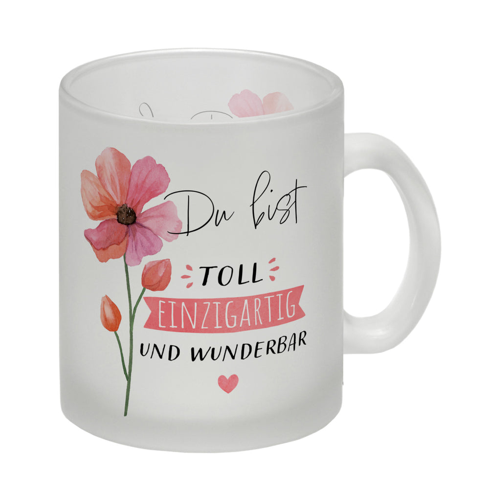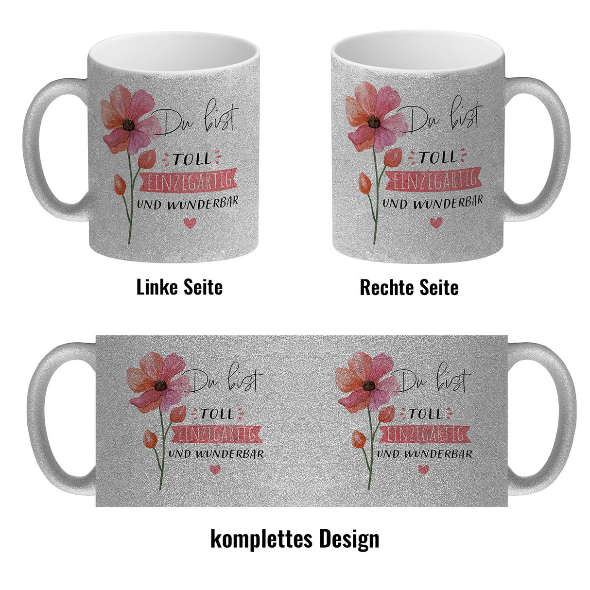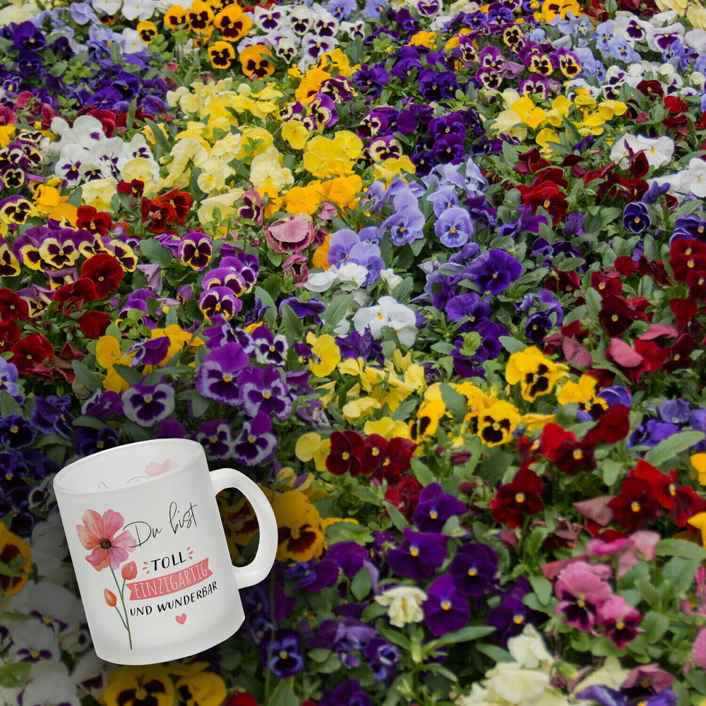 Blume Kaffeebecher mit Spruch Du bist toll einzigartig und wunderbar