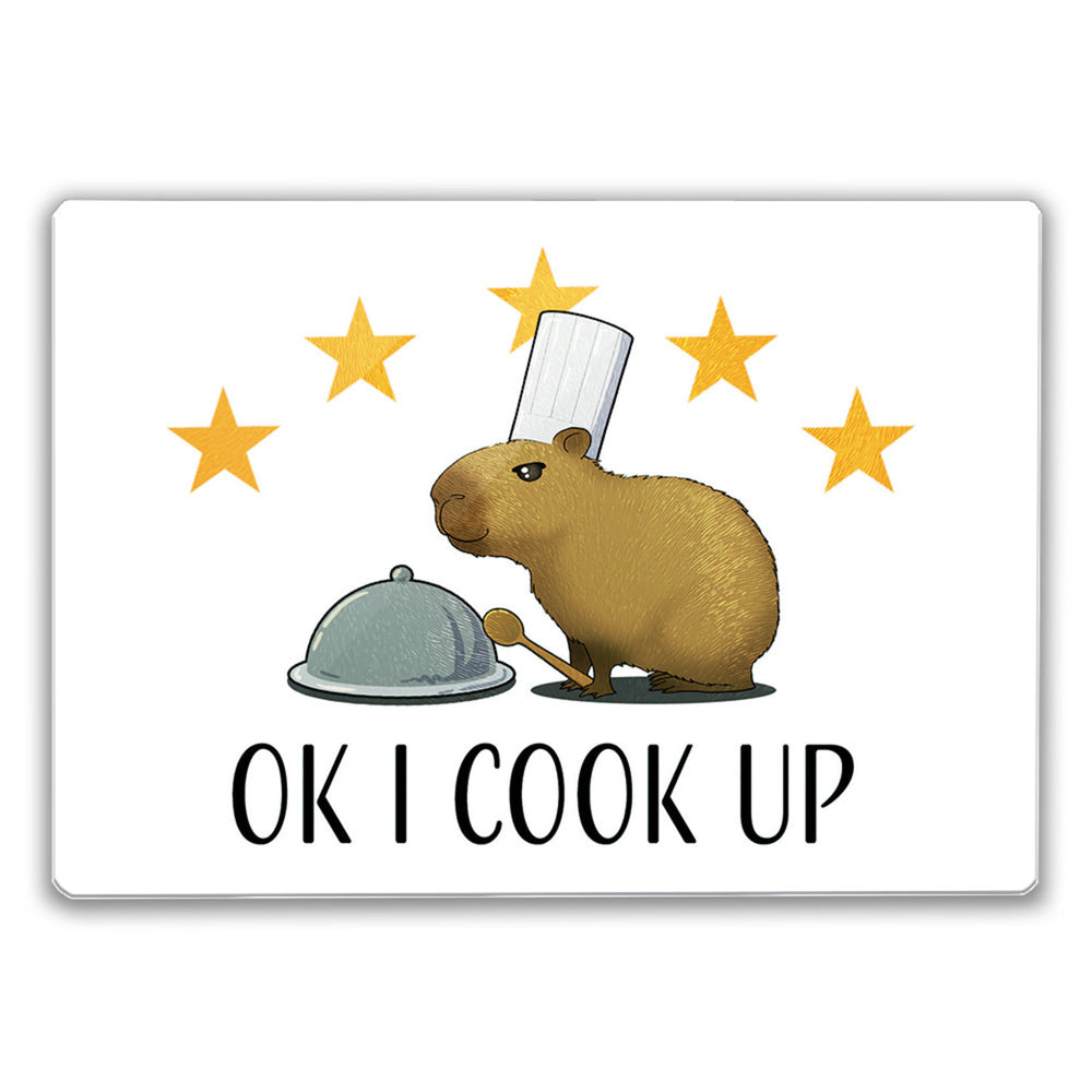 Capybara-Koch Schneidebrett aus Glas mit Spruch Ok I cook up