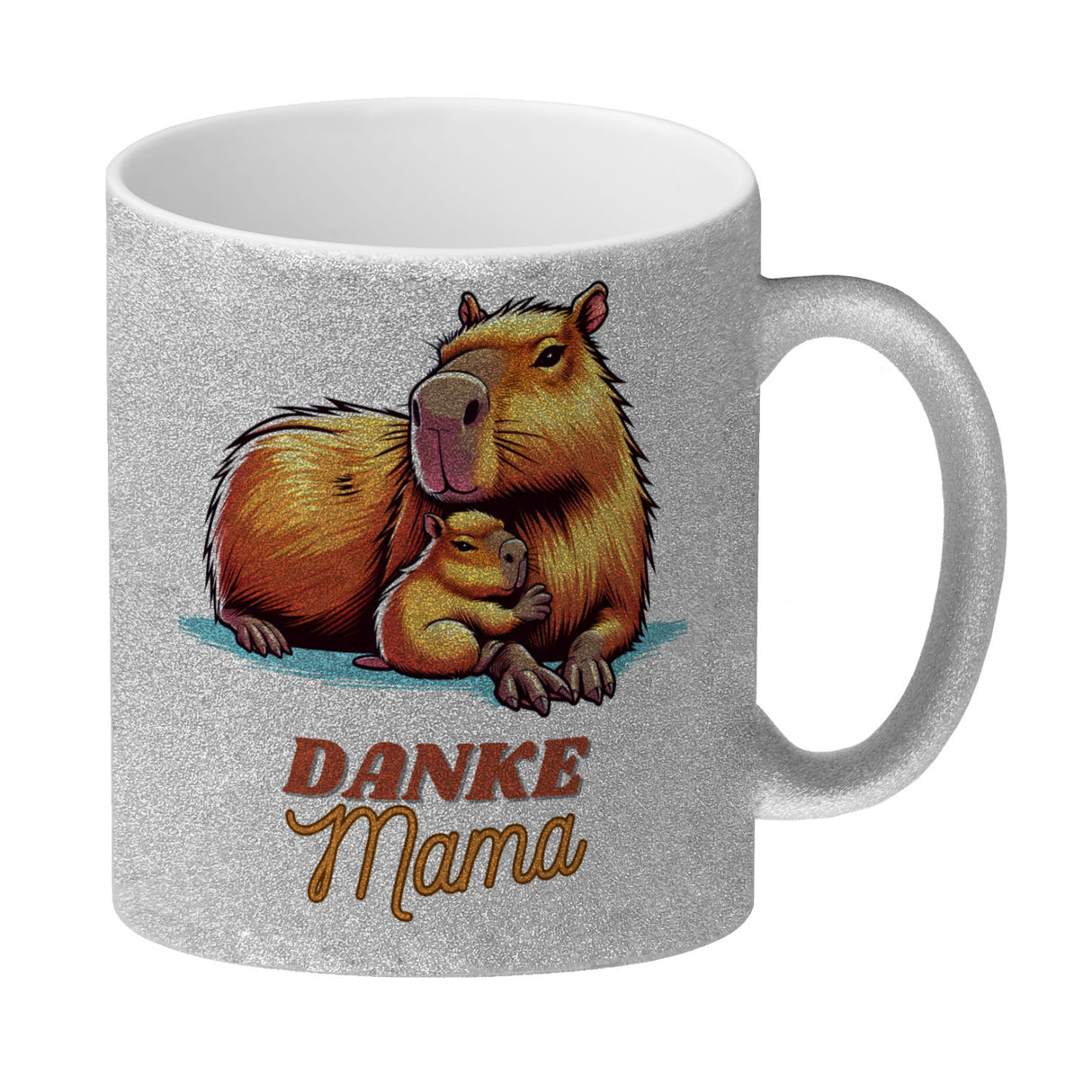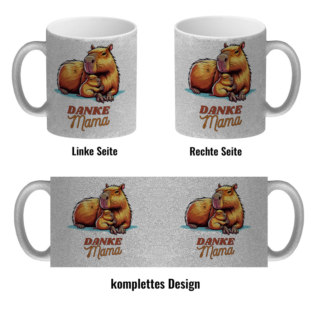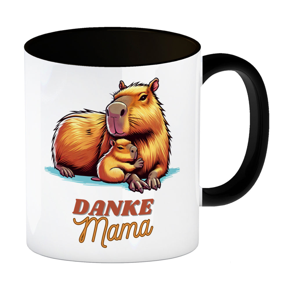 - 1x Capybara Mama und Kind Kaffeebecher mit Spruch Danke Mama in der gewählten Ausführung