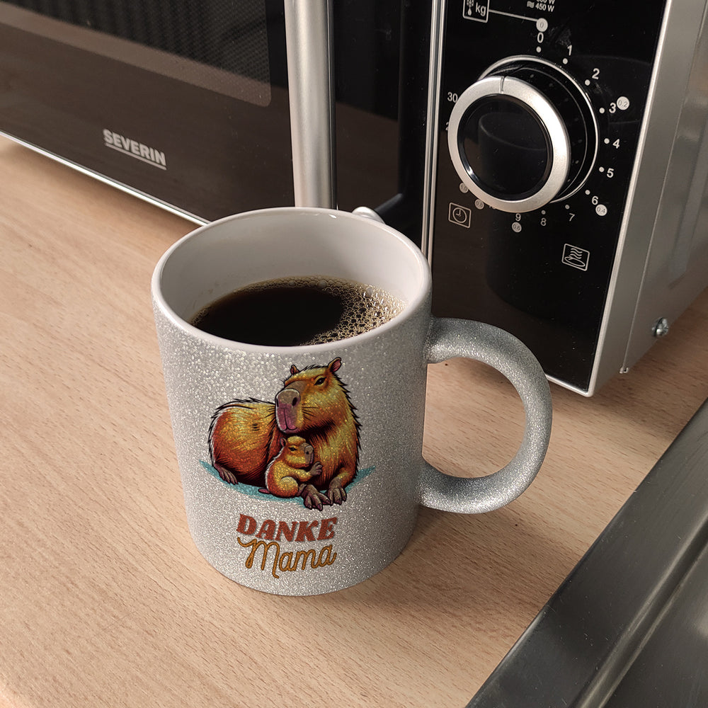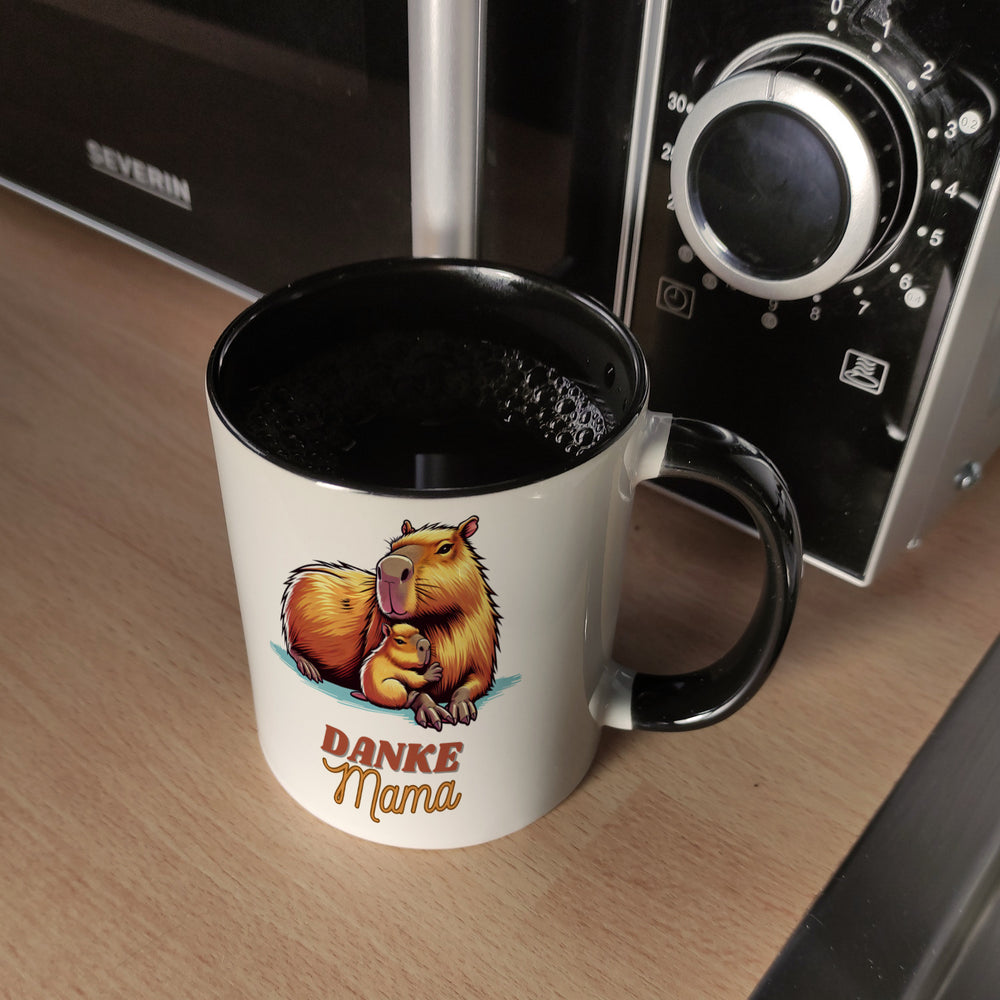 Capybara Mama und Kind Kaffeebecher mit Spruch Danke Mama