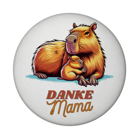 Capybara Mama und Kind Magnet rund mit Spruch Danke Mama