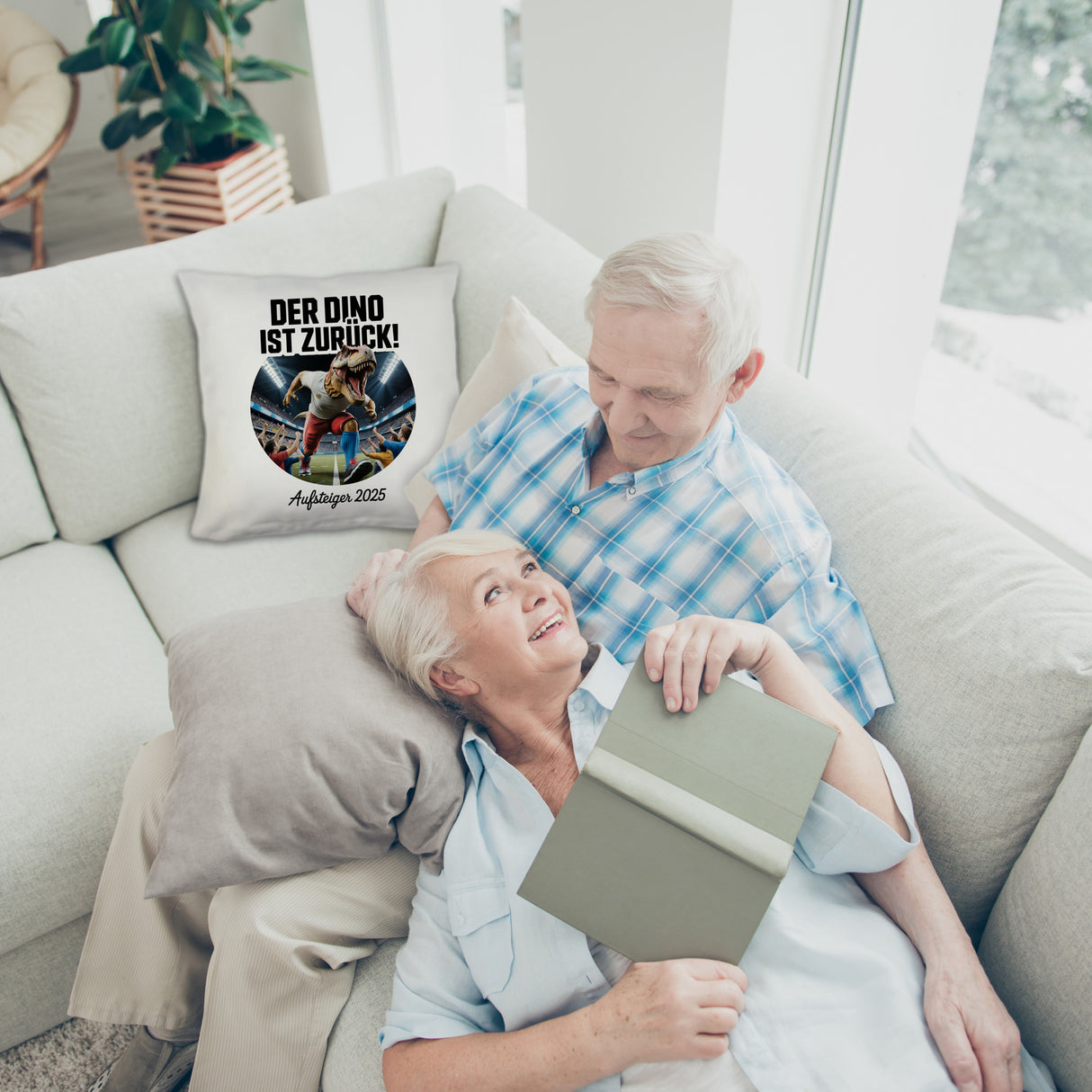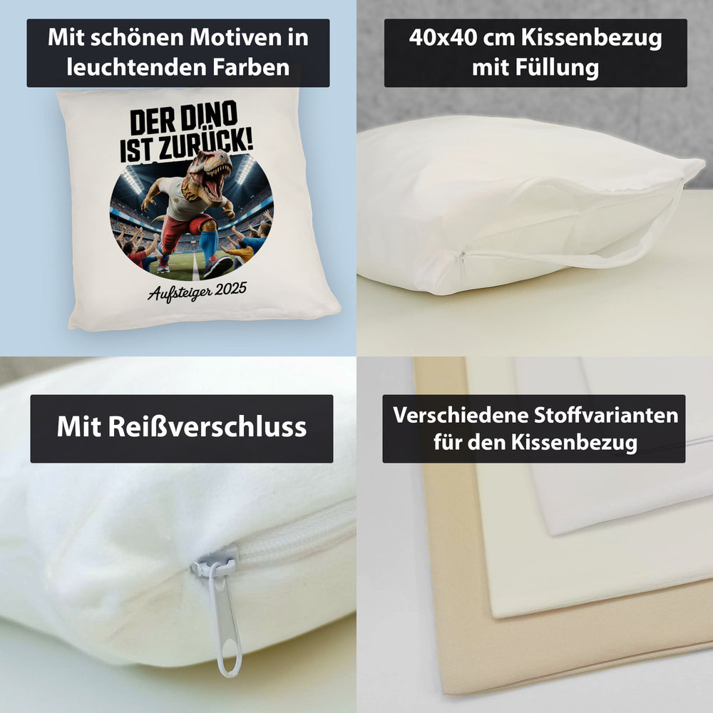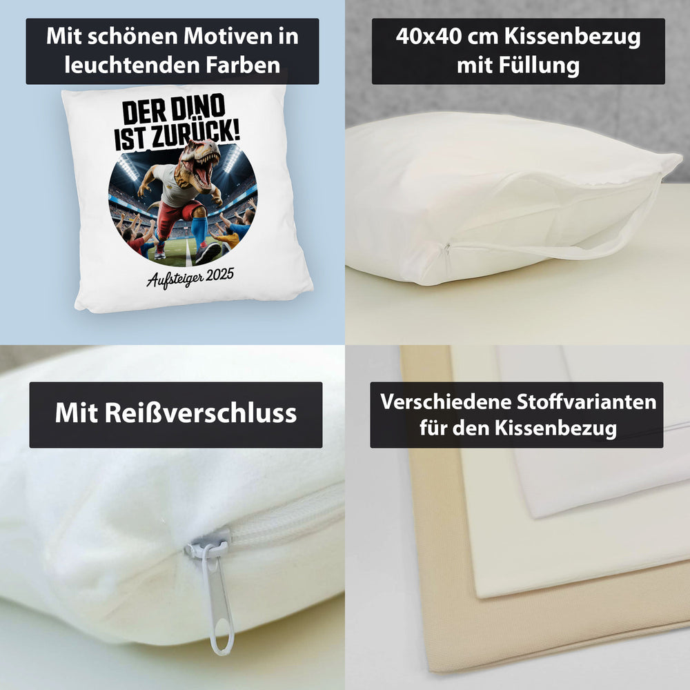 - 1x Der Dino ist zurück Hamburg Kissen - Aufsteiger 2025 in der gewählten Ausführung