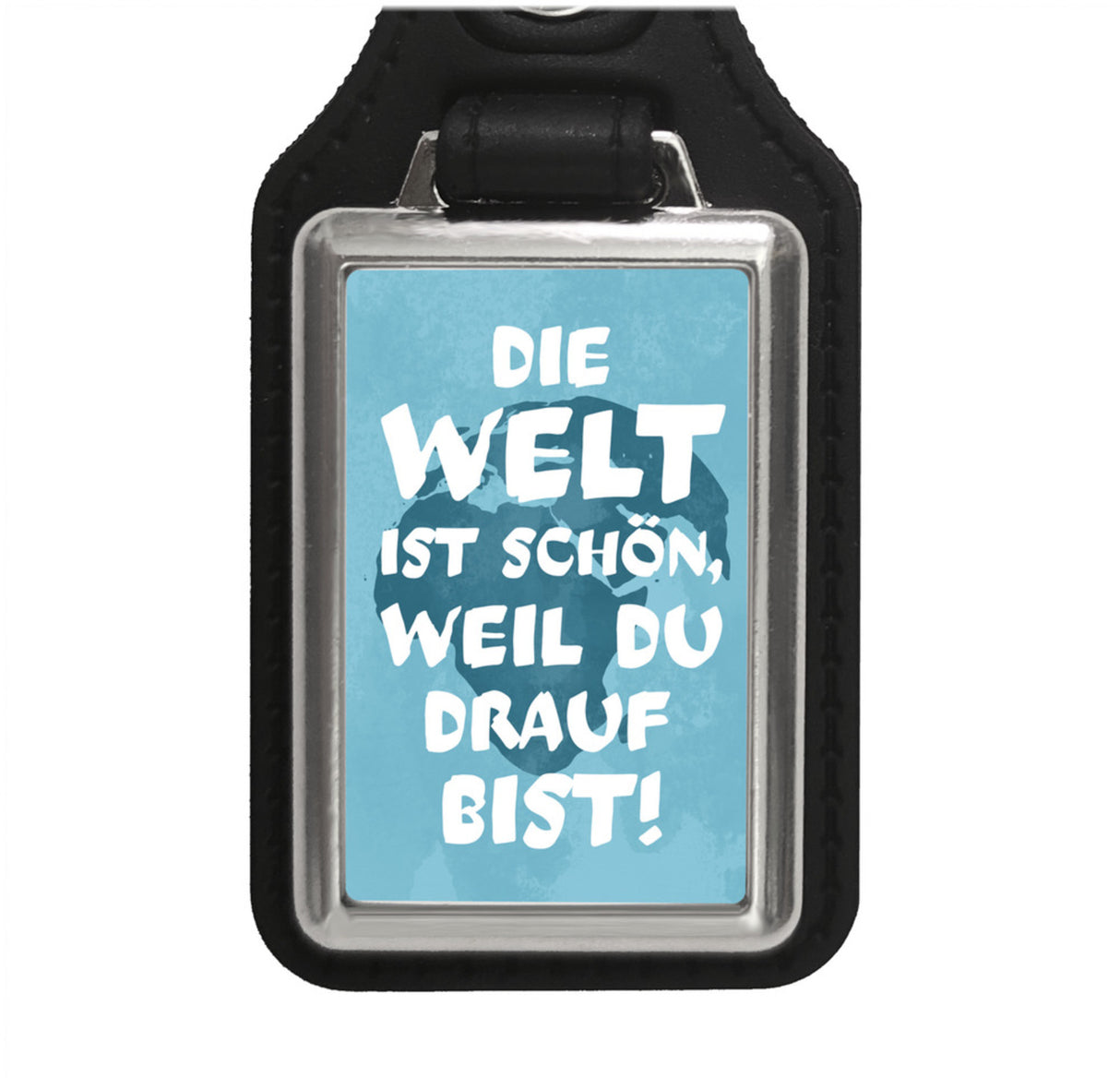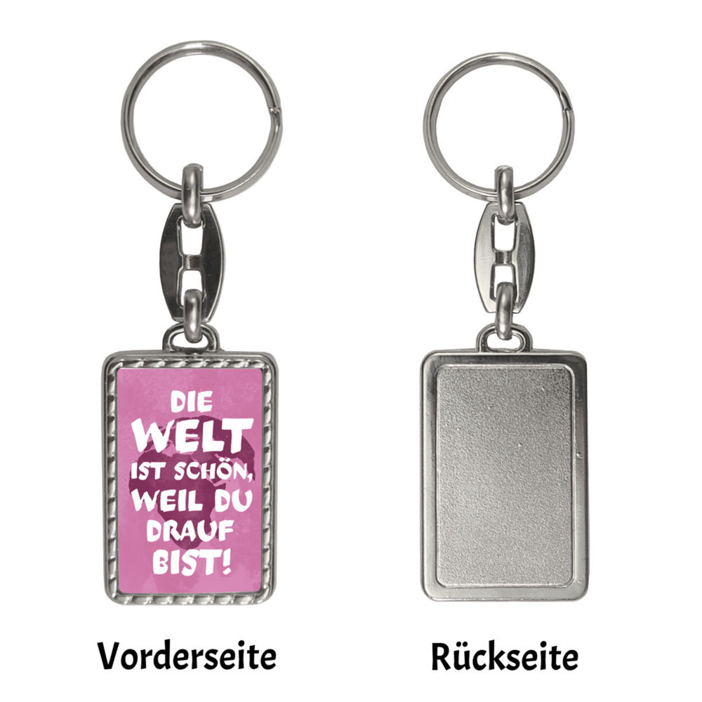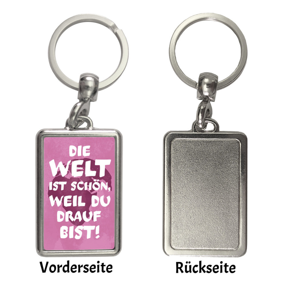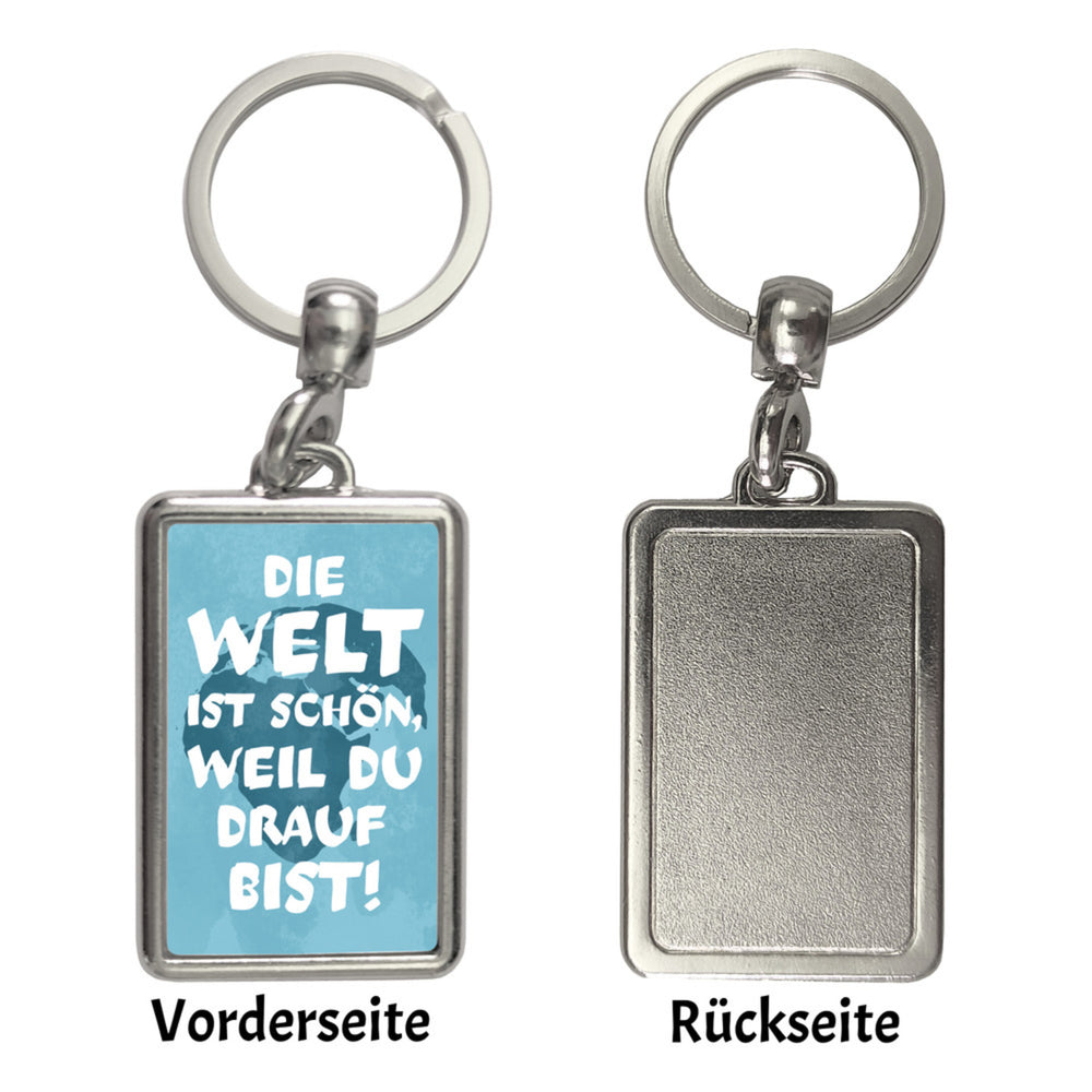 - 1x Die Welt ist schön, weil du drauf bist Schlüsselanhänger in der gewählten Ausführung