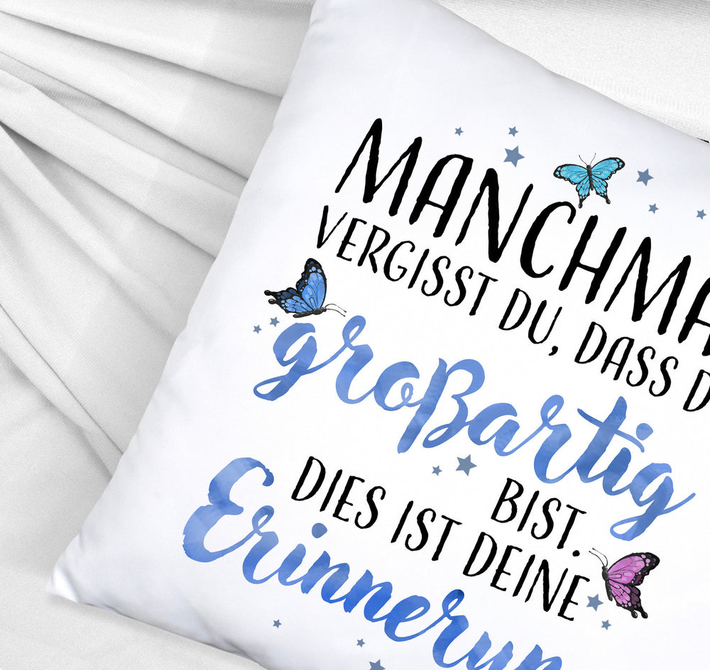 - Wenn du nach einem liebevollen, gefühlvollen und originellen Geschenk suchst, ist dieses Kissen genau das Richtige. Es eignet sich perfekt für den Geburtstag einer Freundin, deiner Mutter oder Schwester. Es ist mehr als nur ein Kissen, es ist eine tägliche Erinnerung an die eigene Großartigkeit!