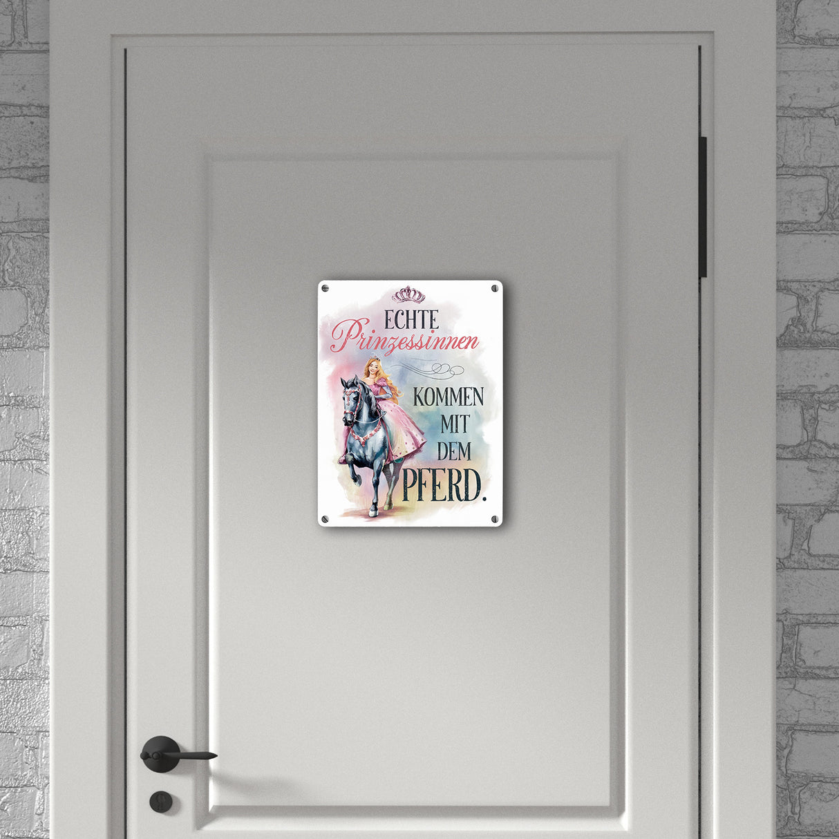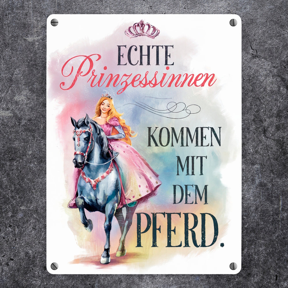 Echte Prinzessinnen reiten Pferde Metallschild in 15x20 cm