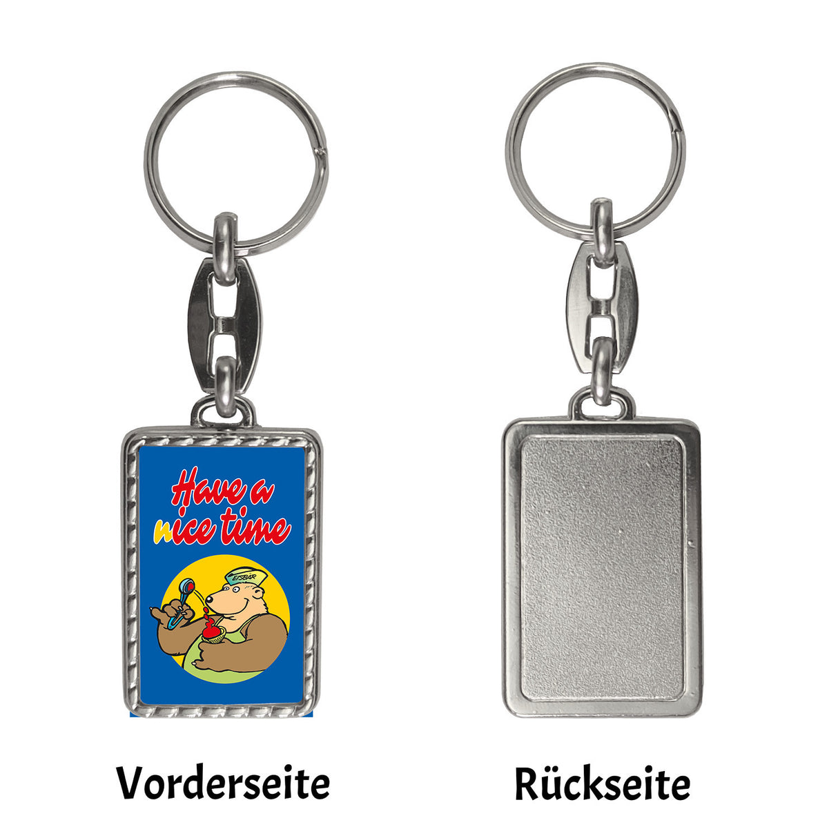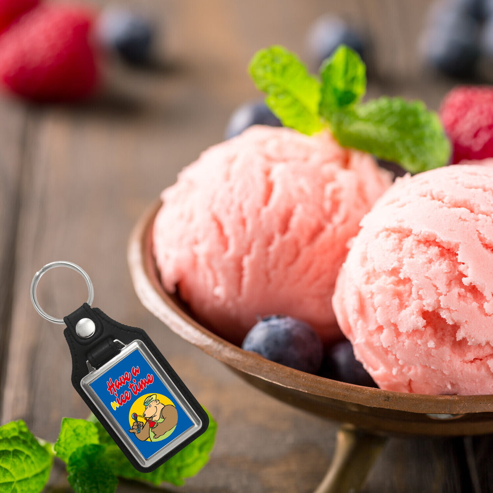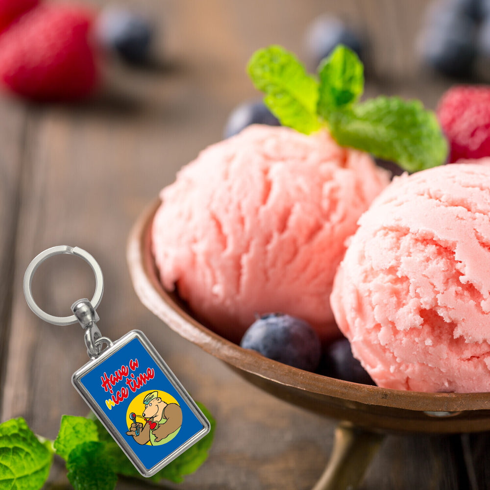 • 1x Eisbär mit Waffeleis Schlüsselanhänger mit Spruch have a nice time in der gewählten Ausführung