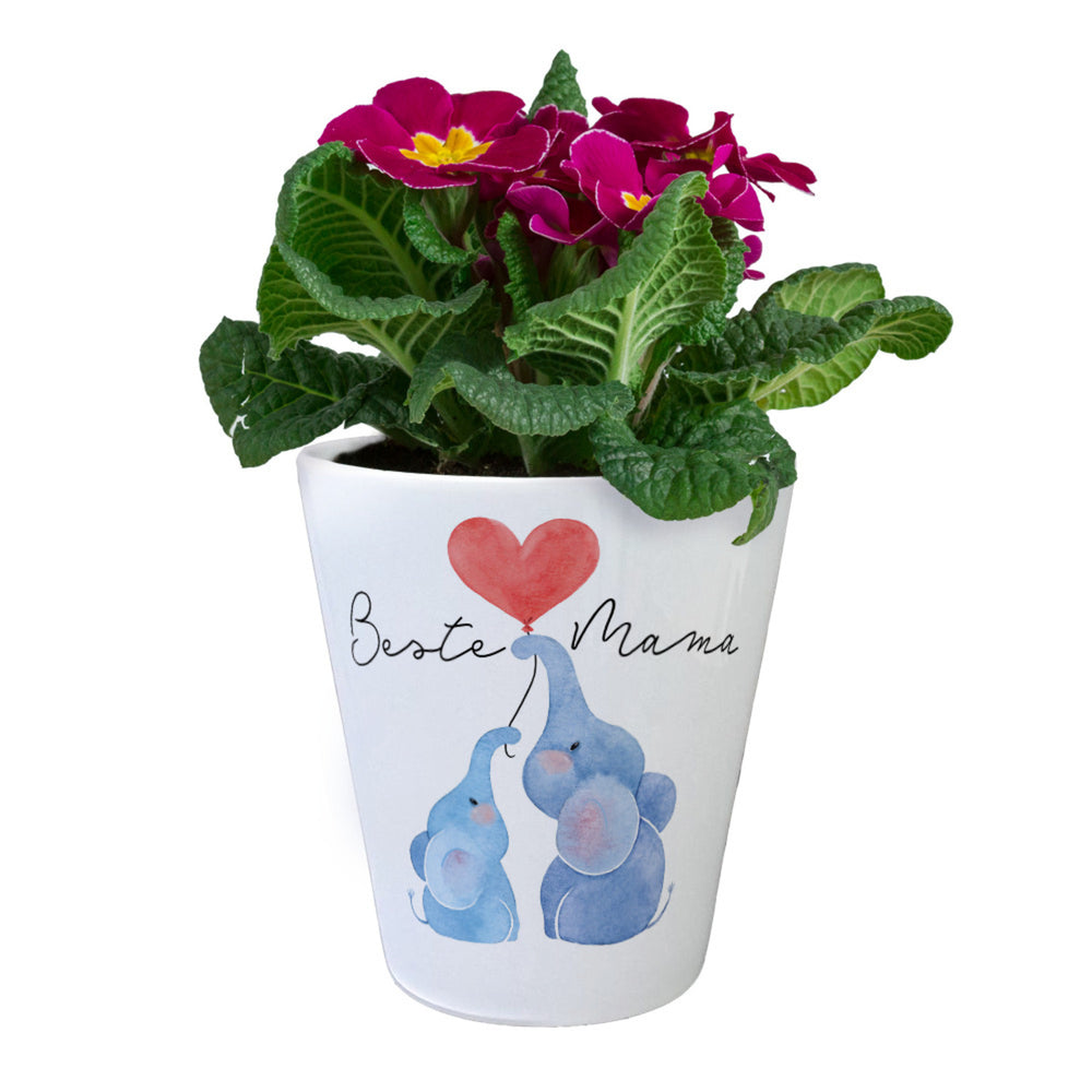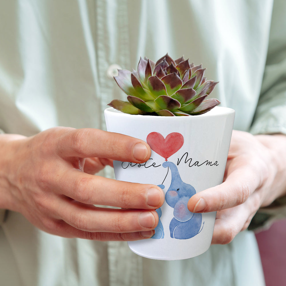 - Dieser entzückende Blumentopf ist ein echter Herzstürmer! Stell dir vor, wie dieser niedliche Elefanten-Duo mit ihrem Herzluftballon Mama's Herz höherschlagen lässt – und dazu noch der Spruch "Beste Mama"! Dieses liebevoll gestaltete Schmuckstück ist das ideale Muttertagsgeschenk, das jedes Mal ein Lächeln ins Gesicht zaubert, wenn sie ihre Pflanze gießt.