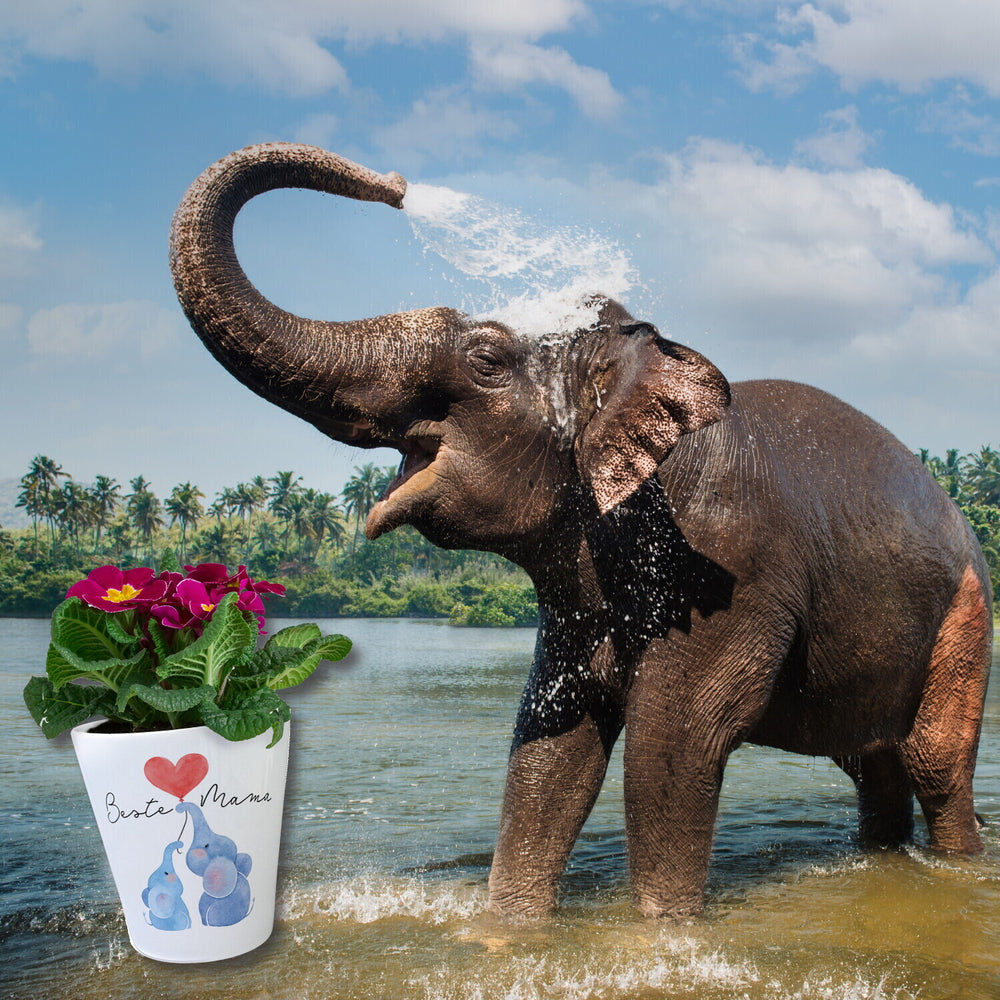 Elefant Mutter und Kind Blumentopf mit Spruch Beste Mama