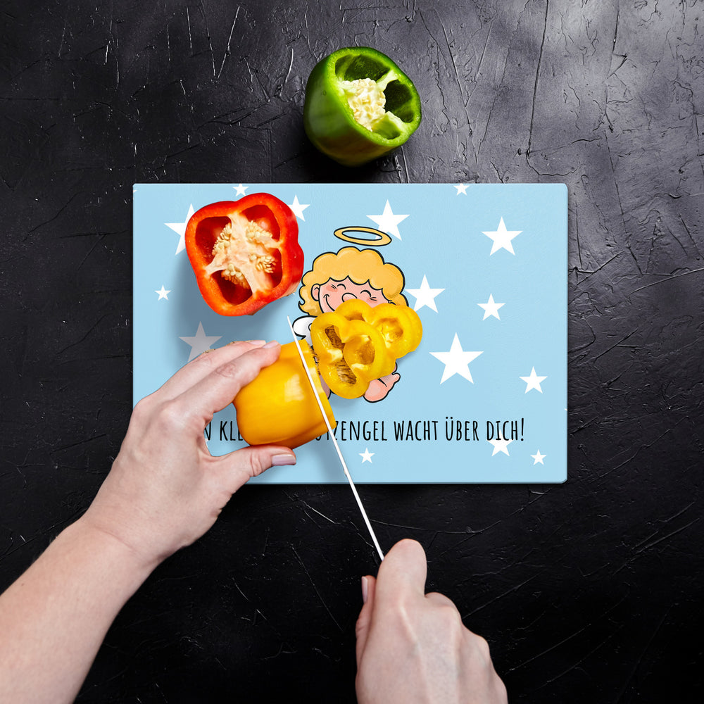 Engel Schneidebrett aus Glas mit Spruch Dein kleiner Schutzengel wacht über Dich