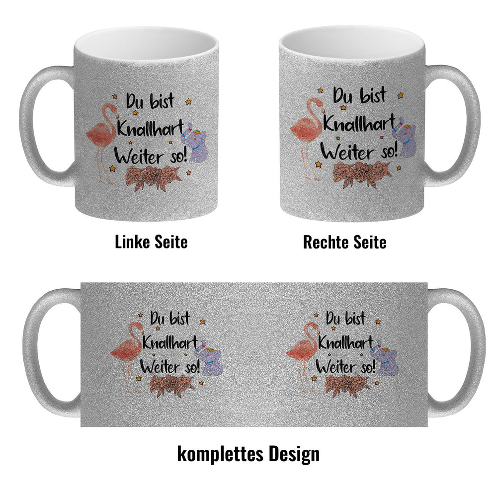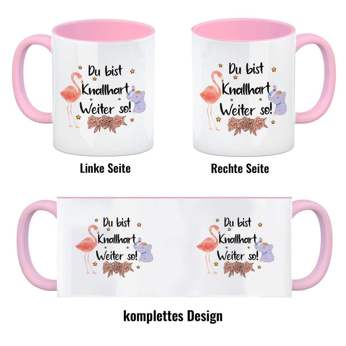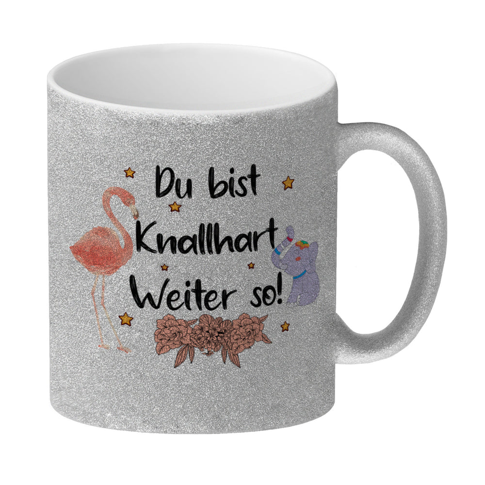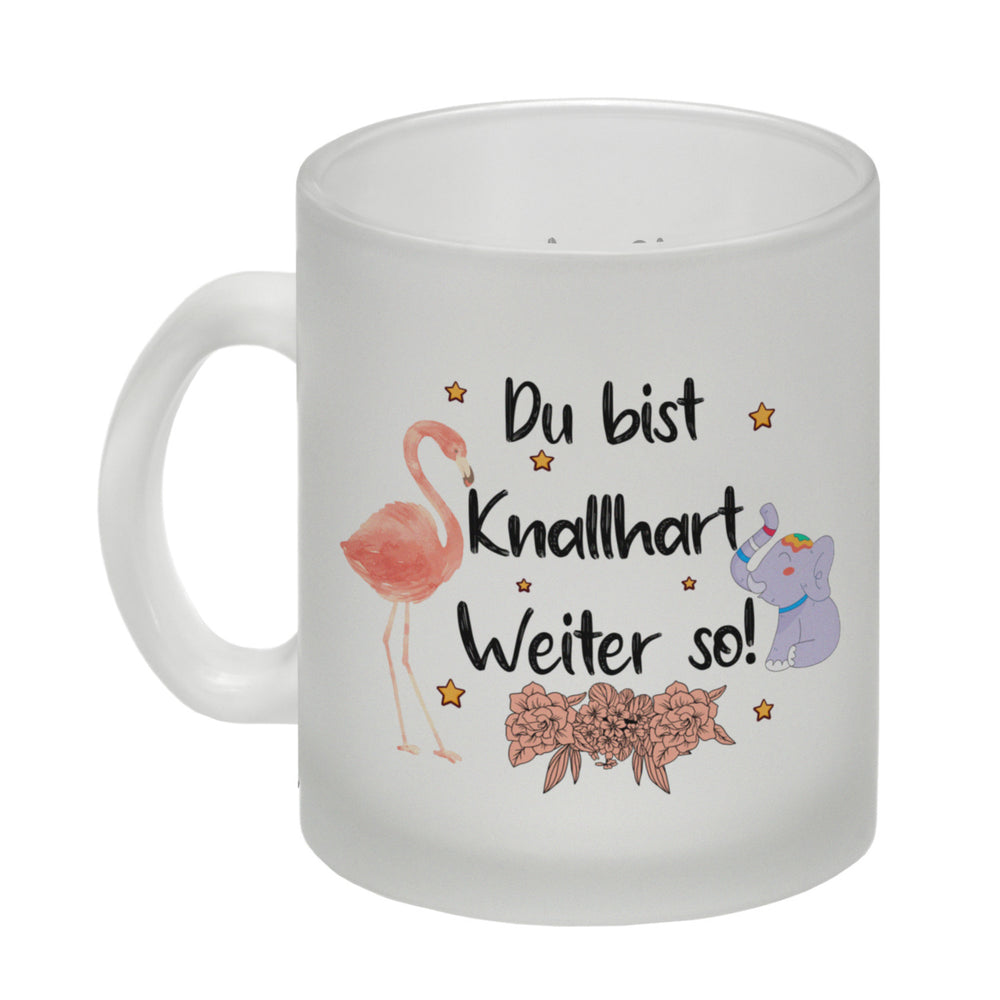 - Der Kaffeebecher mit dem Motiv Du bist knallhart. Weiter so! ist eine tolle Geschenkidee für Frauen zum Geburtstag oder anderen Anlässen. Mit seinen bunten Verzierungen und Spruch motiviert er die Trägerin jeden Tag, um weiterhin ihr Bestes zu geben! Der Becher kann nicht nur als Kaffeetasse, aber auch als Tasse für Tee, Milch oder andere Getränke genutzt werden.