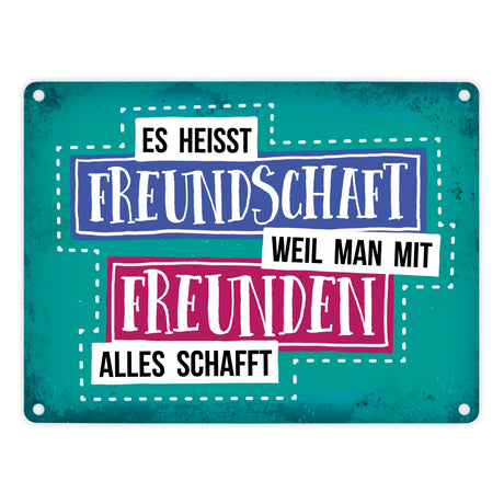 Es heißt Freundschaft, weil man mit Freunden alles schafft Metallschild