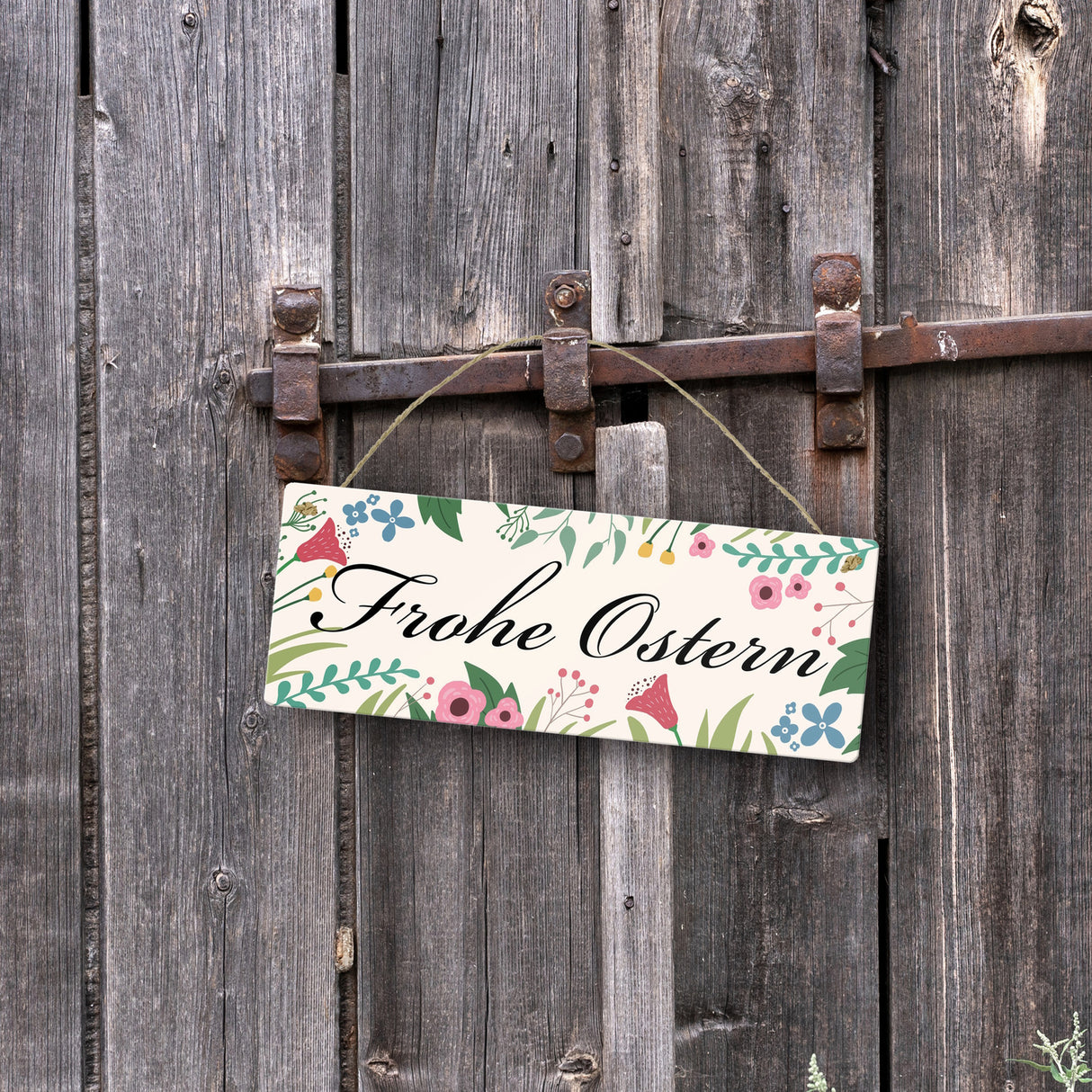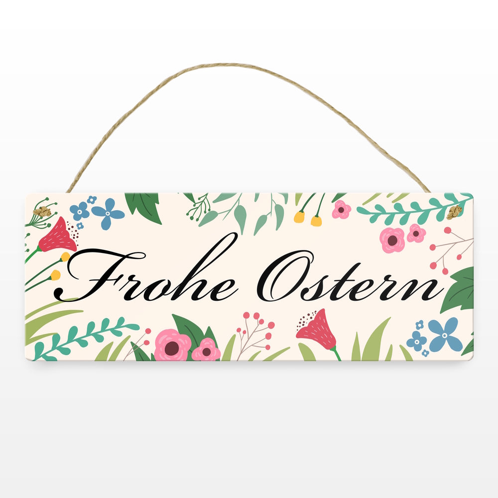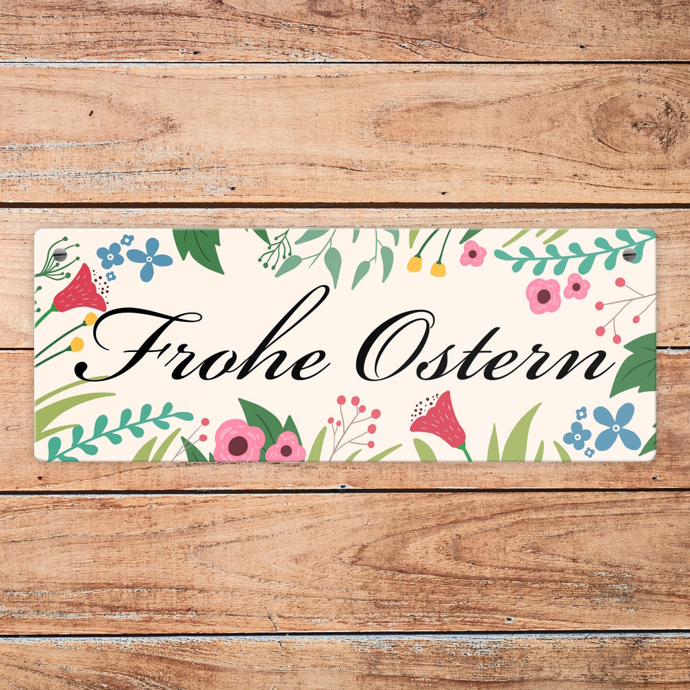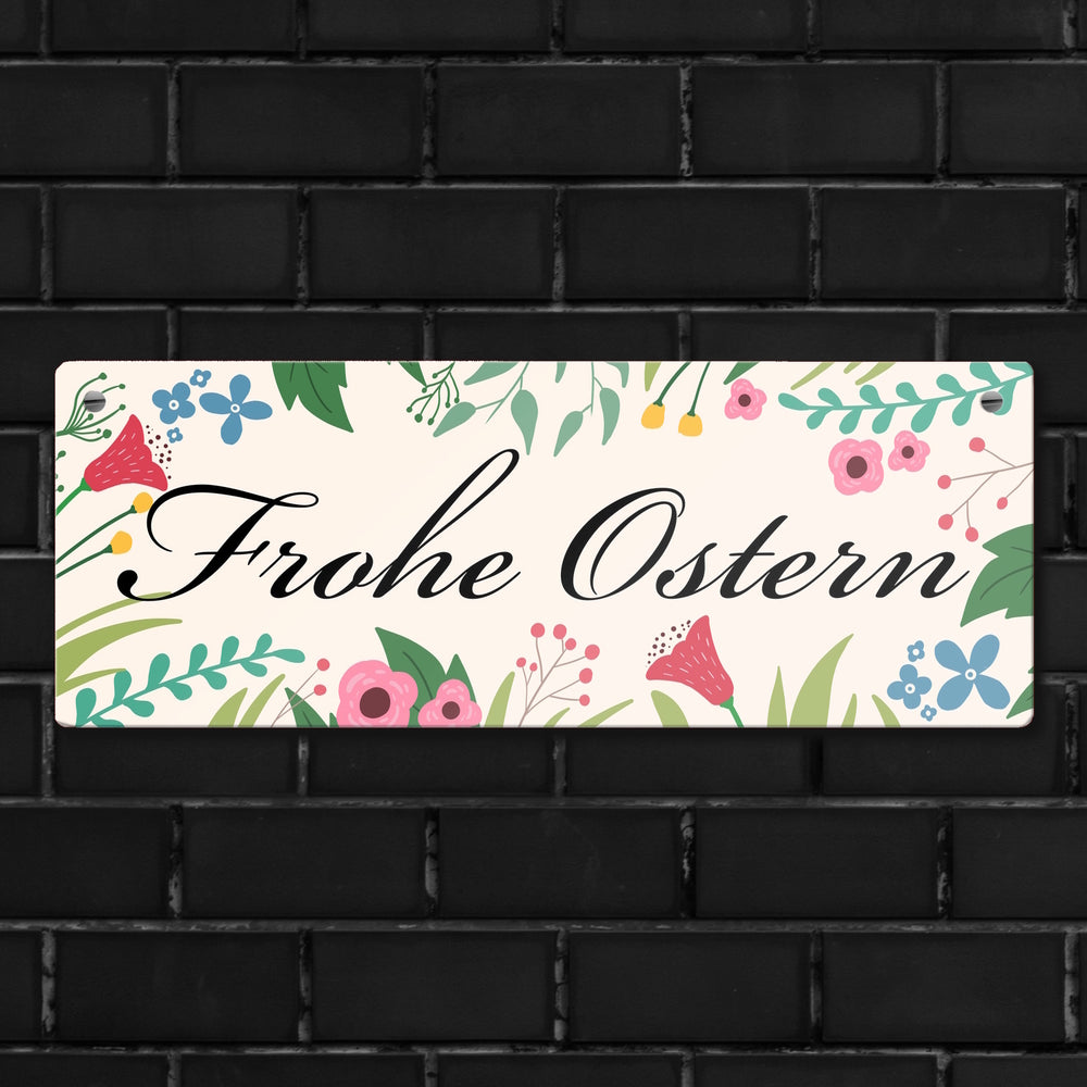 • 1x Frohe Ostern mit Blumen Metallschild für die Osterzeit in der gewählten Größe