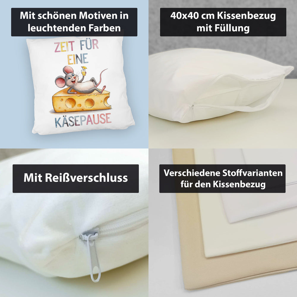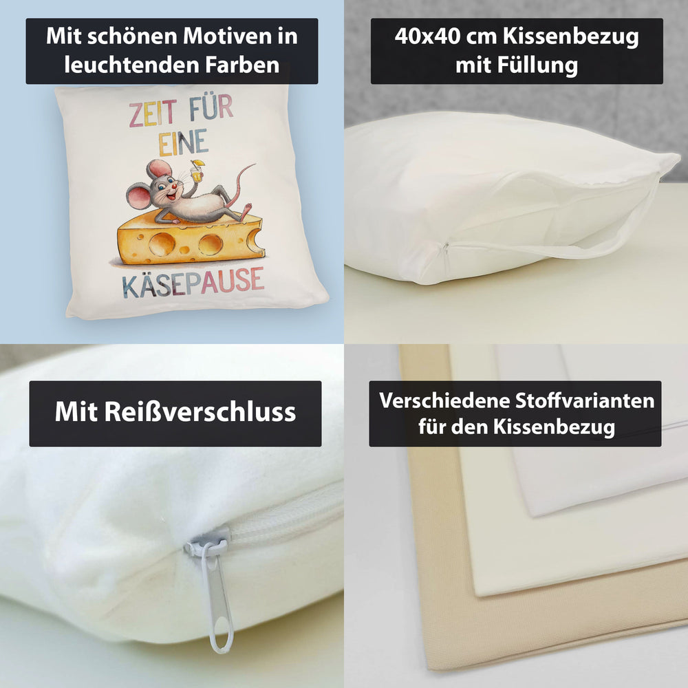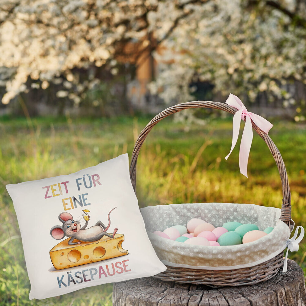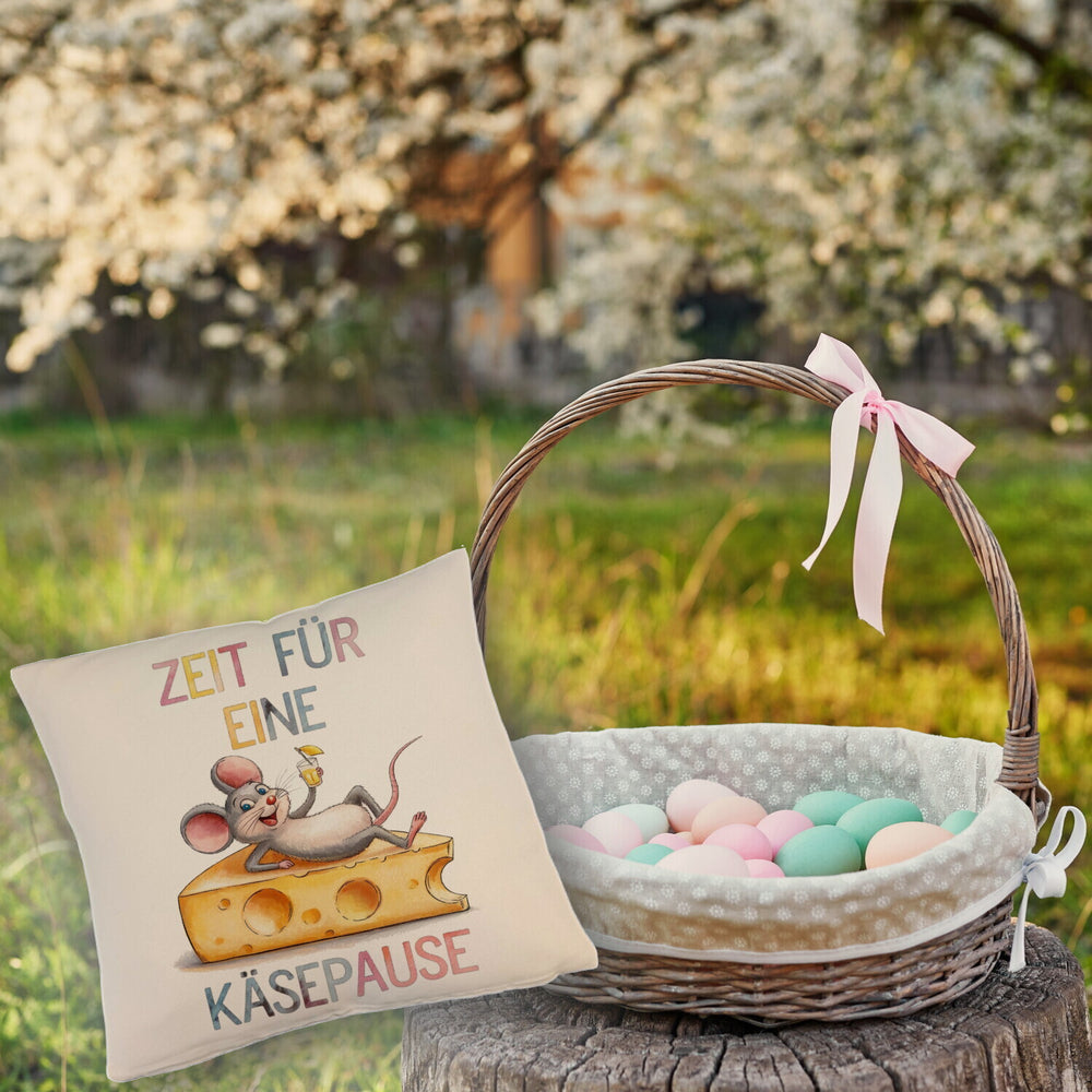 - 1x Fröhliche Maus auf Käse Kissen Käsepause in der gewählten Ausführung