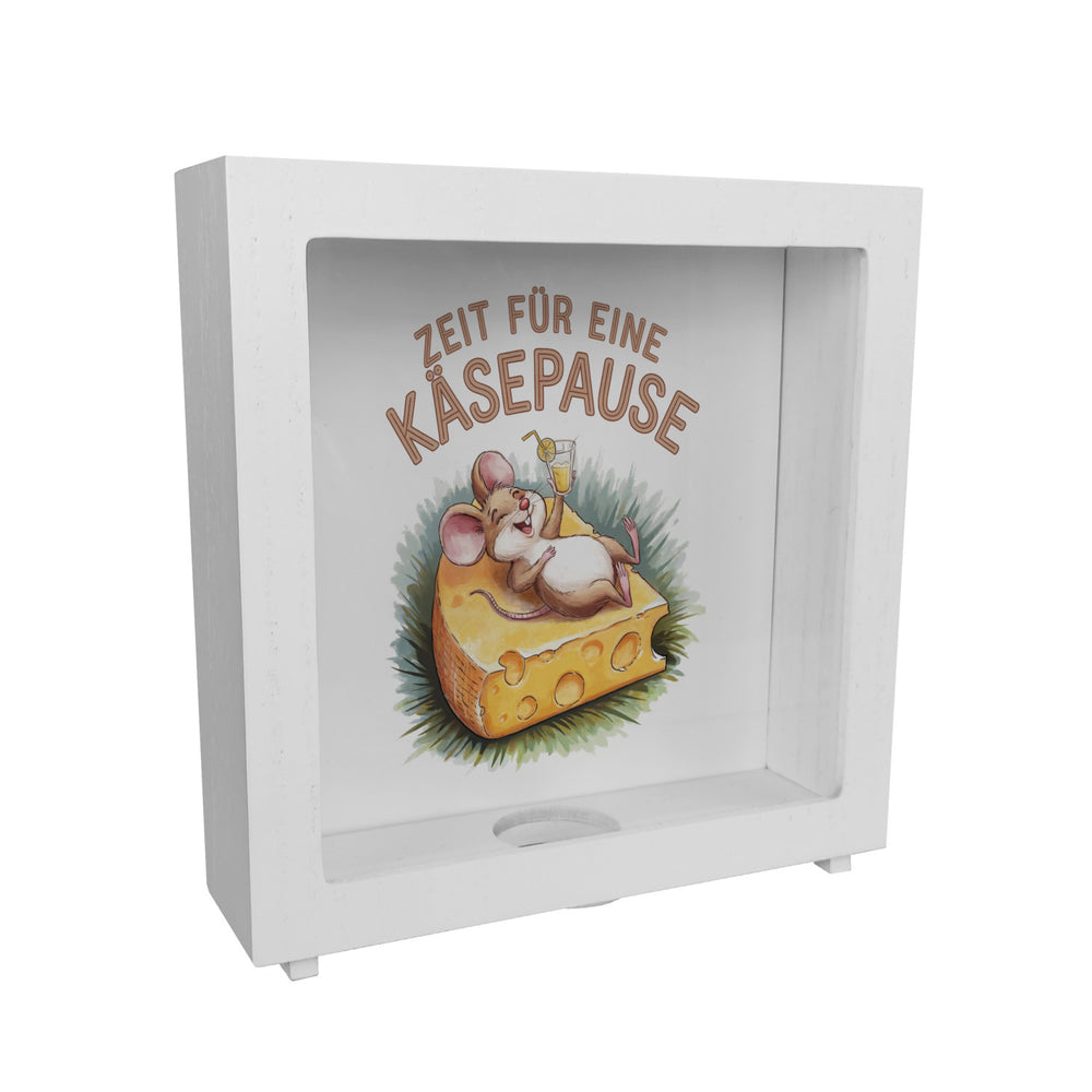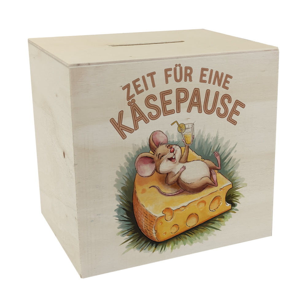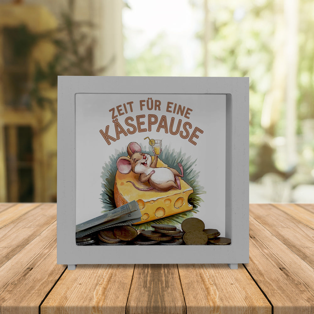 Fröhliche Maus auf Käse Spardose - Käsepause