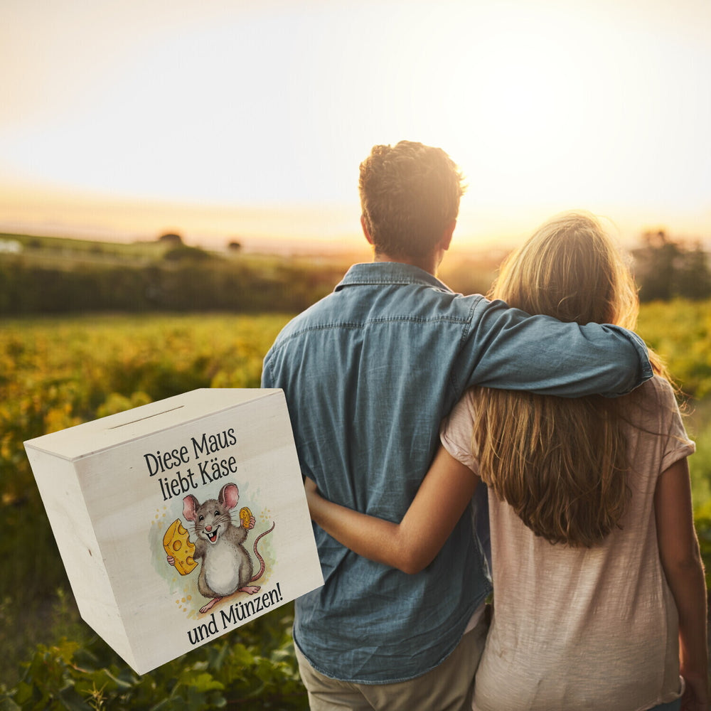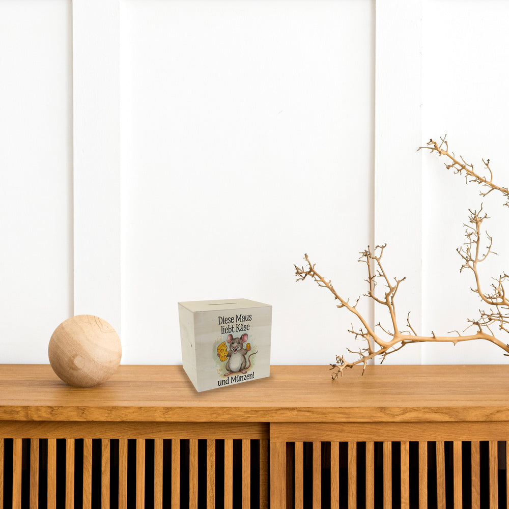 - 1x Fröhliche Maus mit Käse Spardose - liebe Käse und Münzen in der gewählten Ausführung