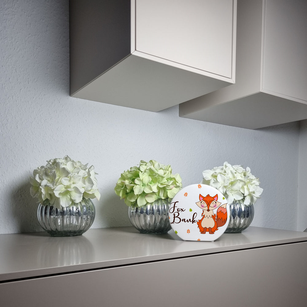 - Die Spardose mit Fuchs Motiv ist eine schöne Geschenkidee, besonders zum Weltspartag. Mit dem niedlichen Fuchs und der Aufschrift Fox Bank erinnert Sie daran, kleines Geld in die Sparkasse zu stecken! Der Artikel passt perfekt als originelles Geschenk für Kinder - vielleicht wird damit ja schon frühzeitig das Interesse am Sparen geweckt? Zusätzlich sorgen auch hochwertige Details wie abgebildete Herbstblätter rund um den Fuchs für ein gemütliches Ambiente.
