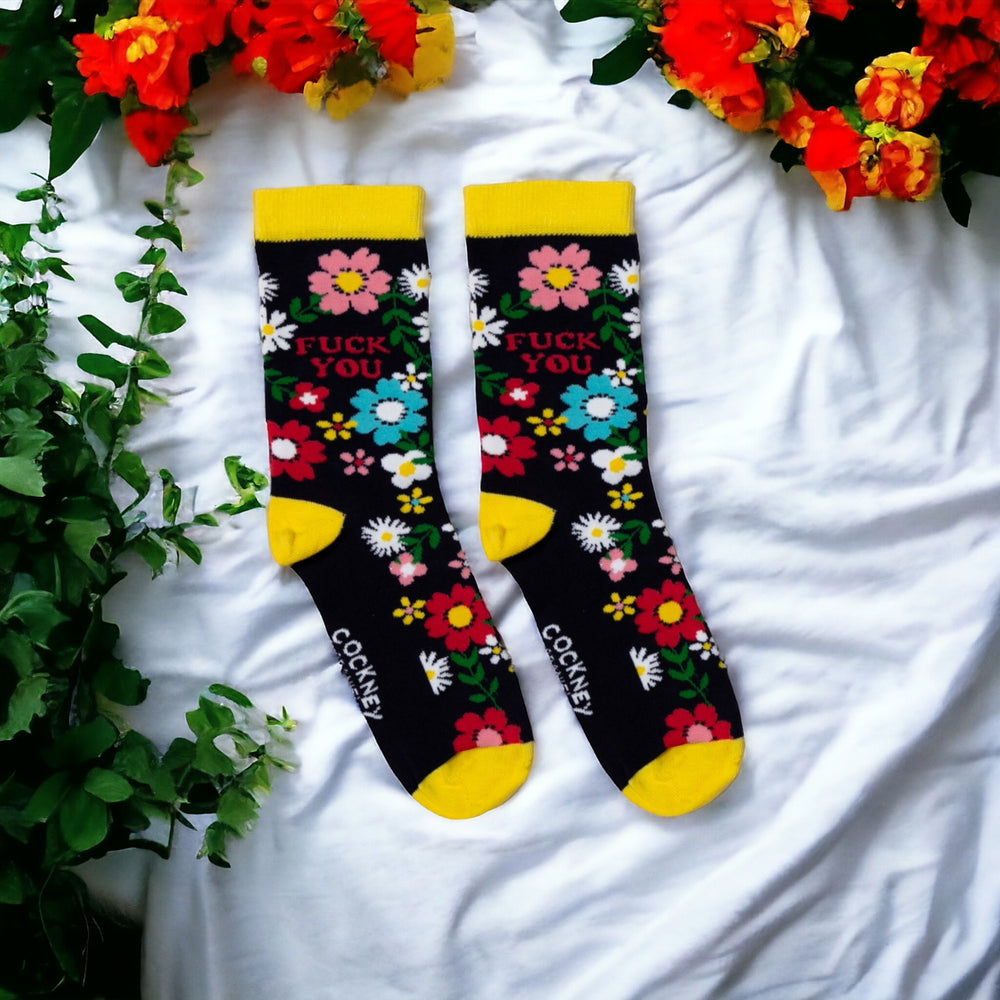 Fuck you Socken Funsocken Blumen Strümpfe in 37-42 im Paar
