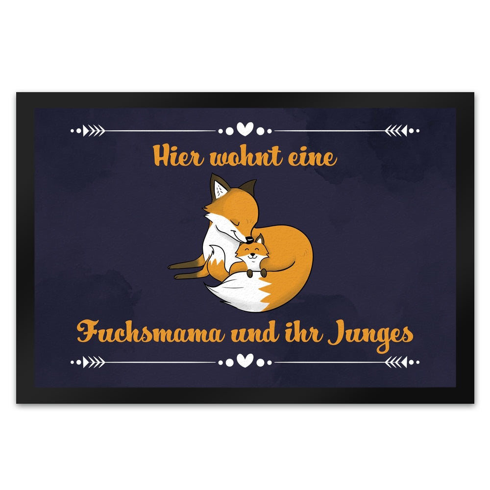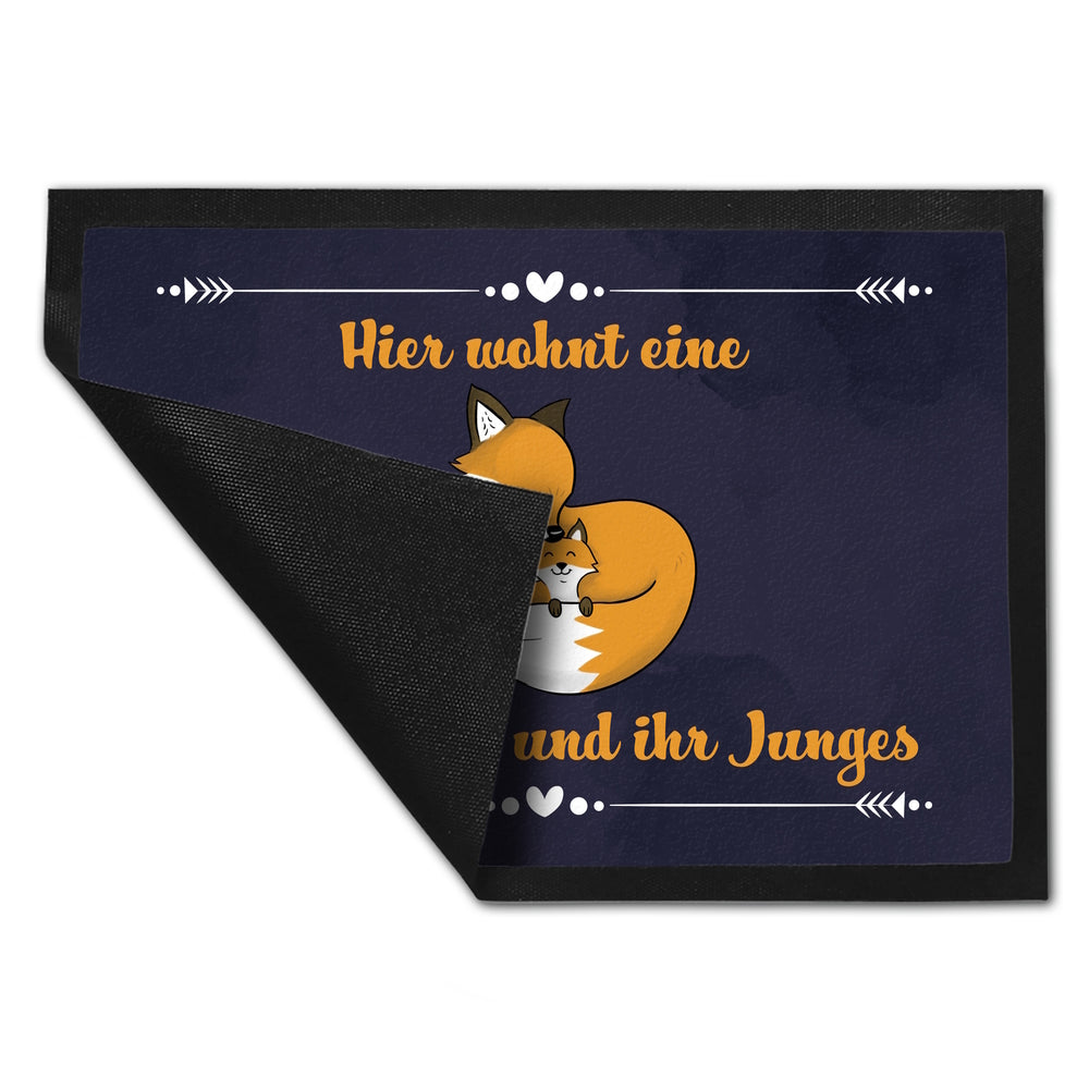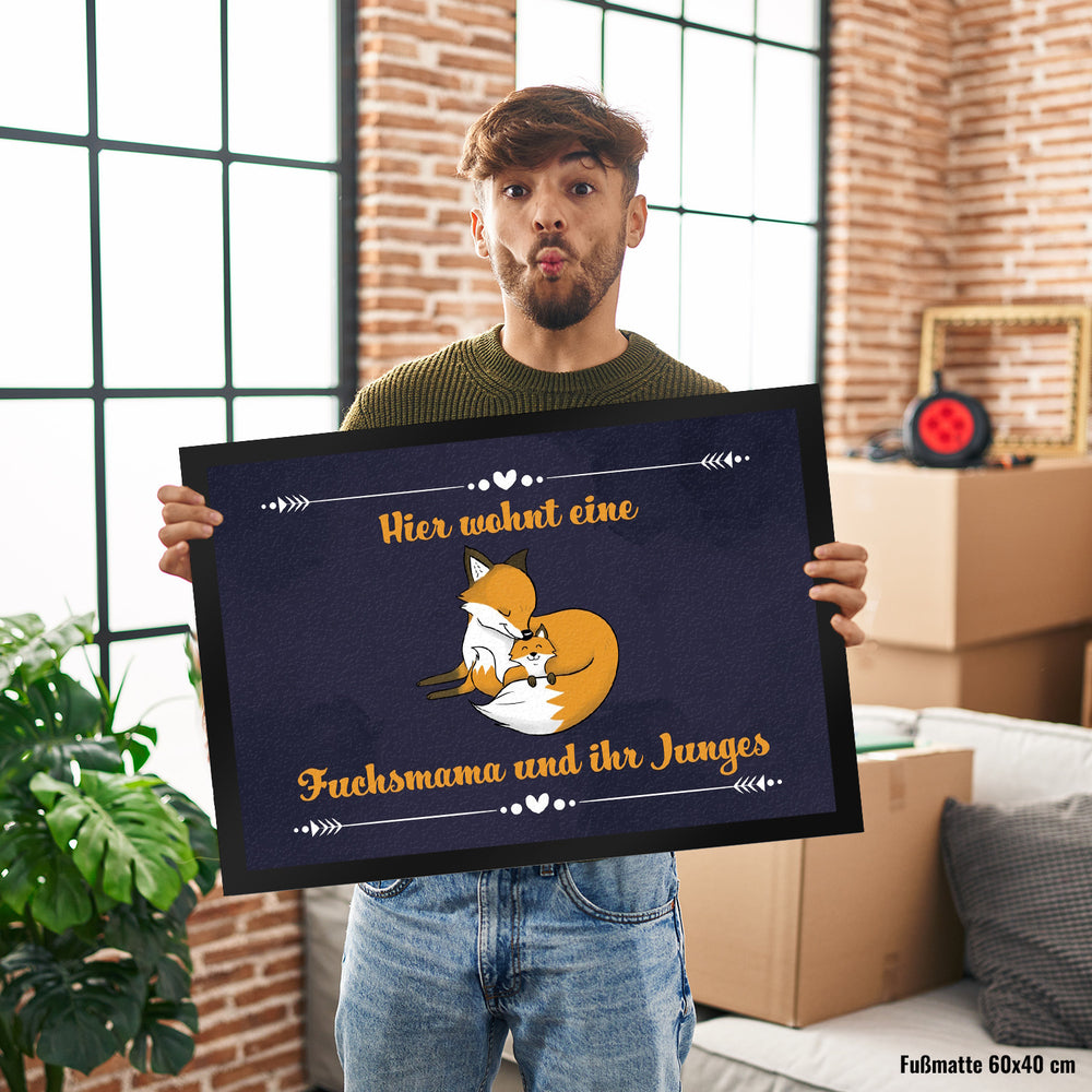 - 1x Fußmatte mit Motiv und Spruch - Hier wohnt eine Fuchsmama und ihr Junges in der gewählten Größe