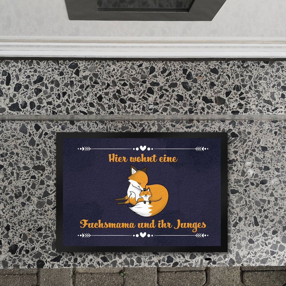 Fußmatte mit Motiv und Spruch - Hier wohnt eine Fuchsmama und ihr Junges