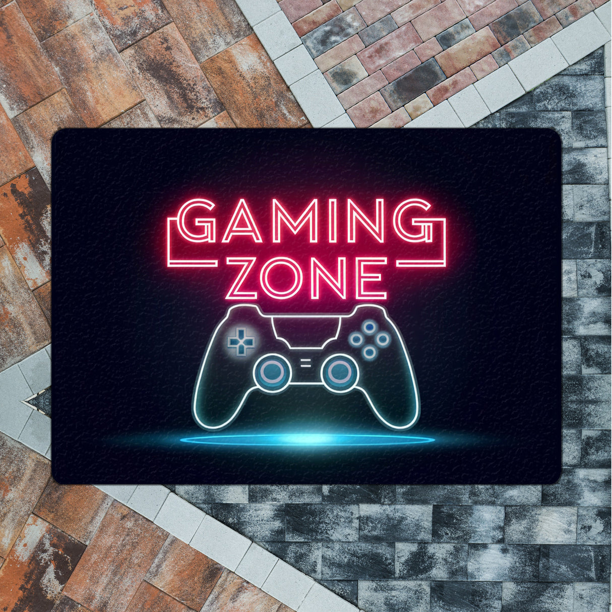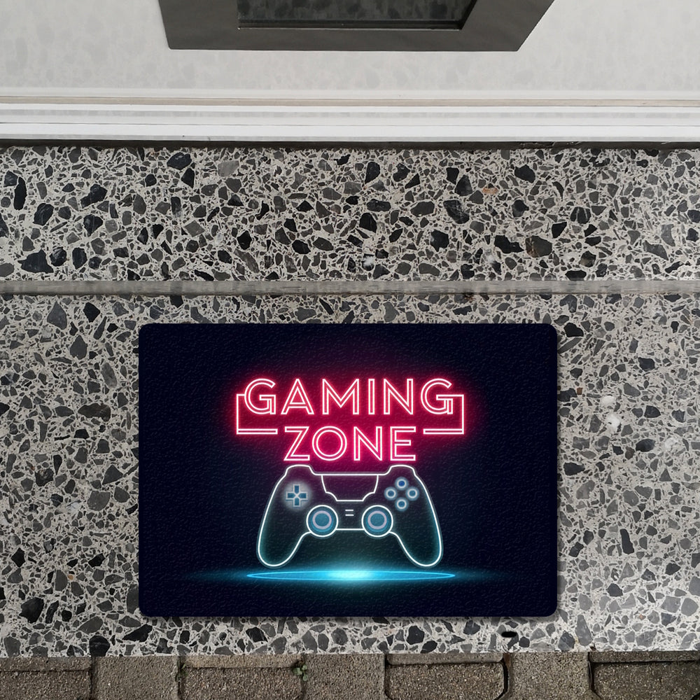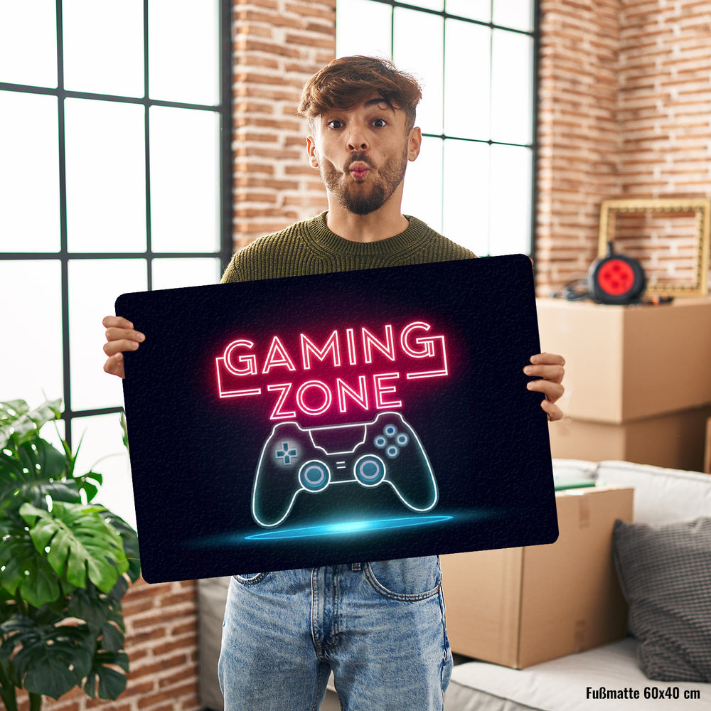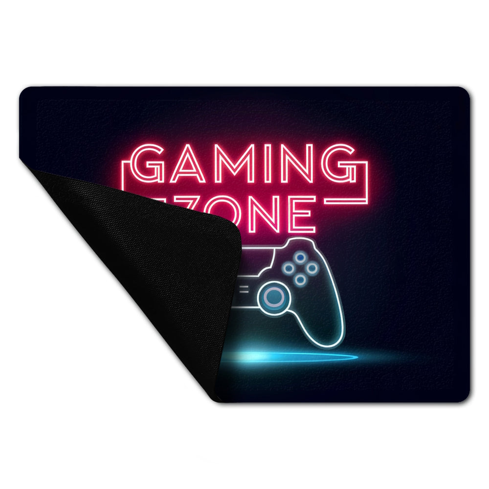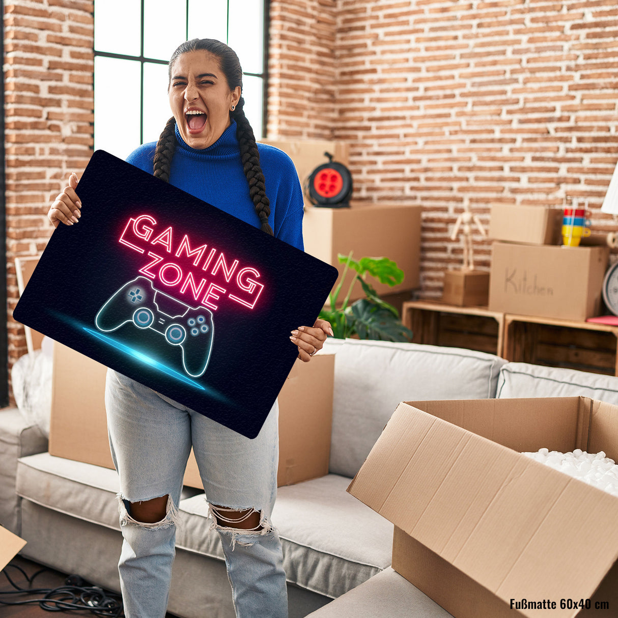 - Willkommen in der GAMING ZONE! Diese Fußmatte begrüßt dich mit einem leuchtenden "GAMING ZONE" Schriftzug und ist ein Muss für alle Gamer.
