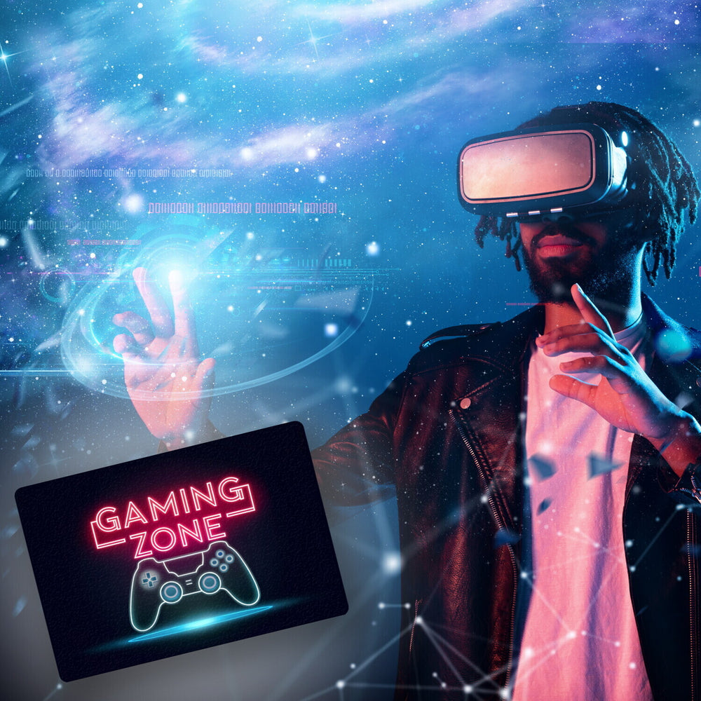 Gamer Zone Metallschild mit coolem Konsolen-Motiv in Neonfarben