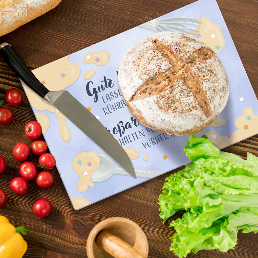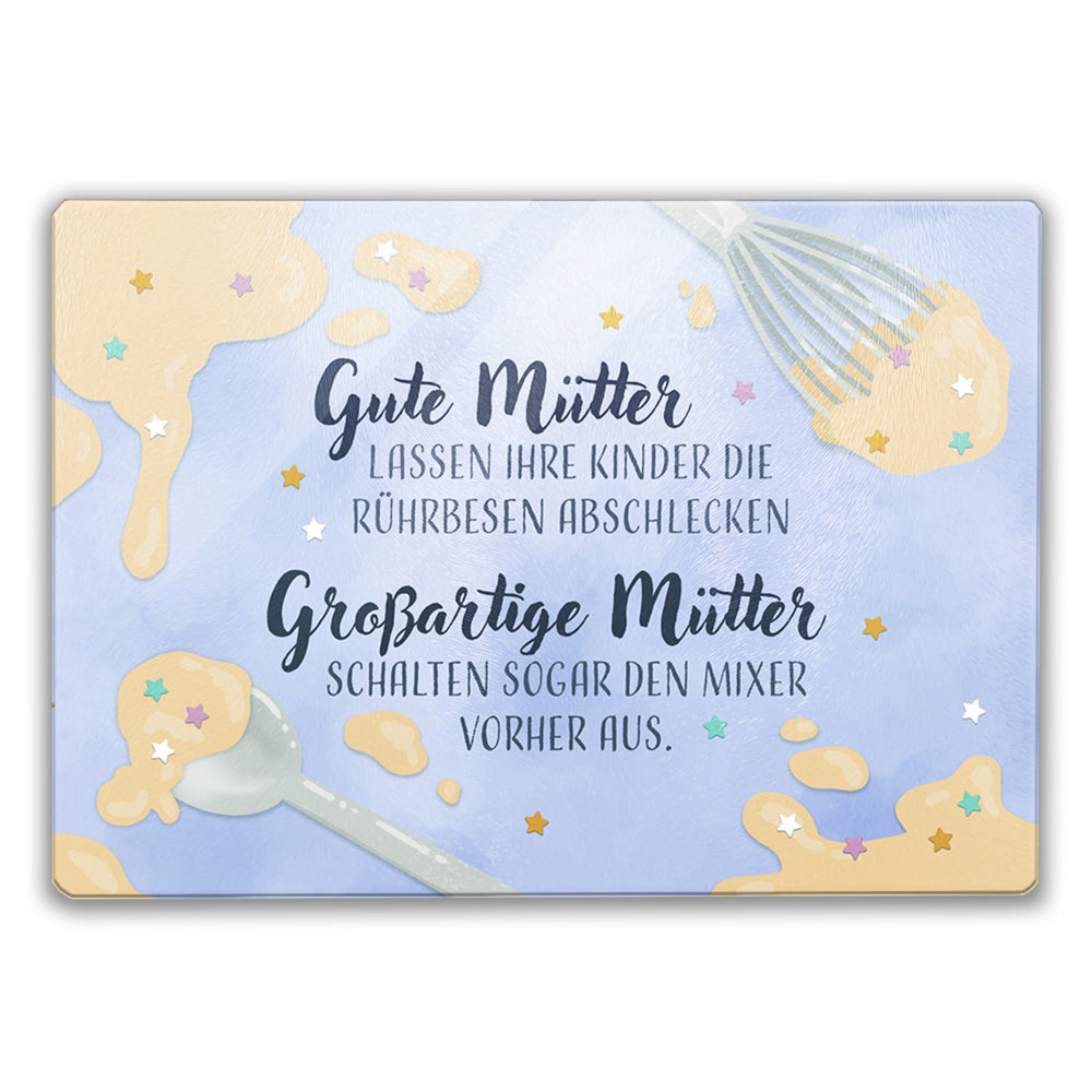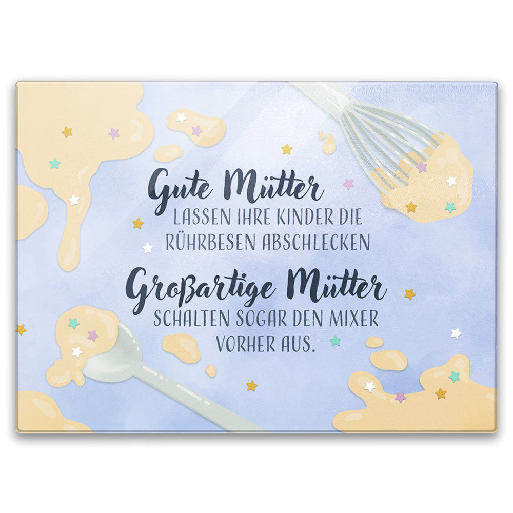 Gute Mütter Schneidebrett aus Glas mit Spruch Kinder dürfen die Rührbesen abschlecken