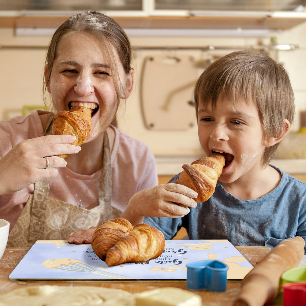 - Das Schneidebrett mit Kuchenteig-Motiv ist ein echter Hingucker in jeder Küche. Es zeigt verkleckerten Teig, Löffel und Schneebesen, die mit Teig bekleckert sind und bunte Sternenkonfetti, die über die Fläche verteilt sind. Dieses Glas-Schneidebrett ist ein Must-have für alle Hobby- und Profiköche, die Wert auf ein humorvolles Küchenaccessoire legen.