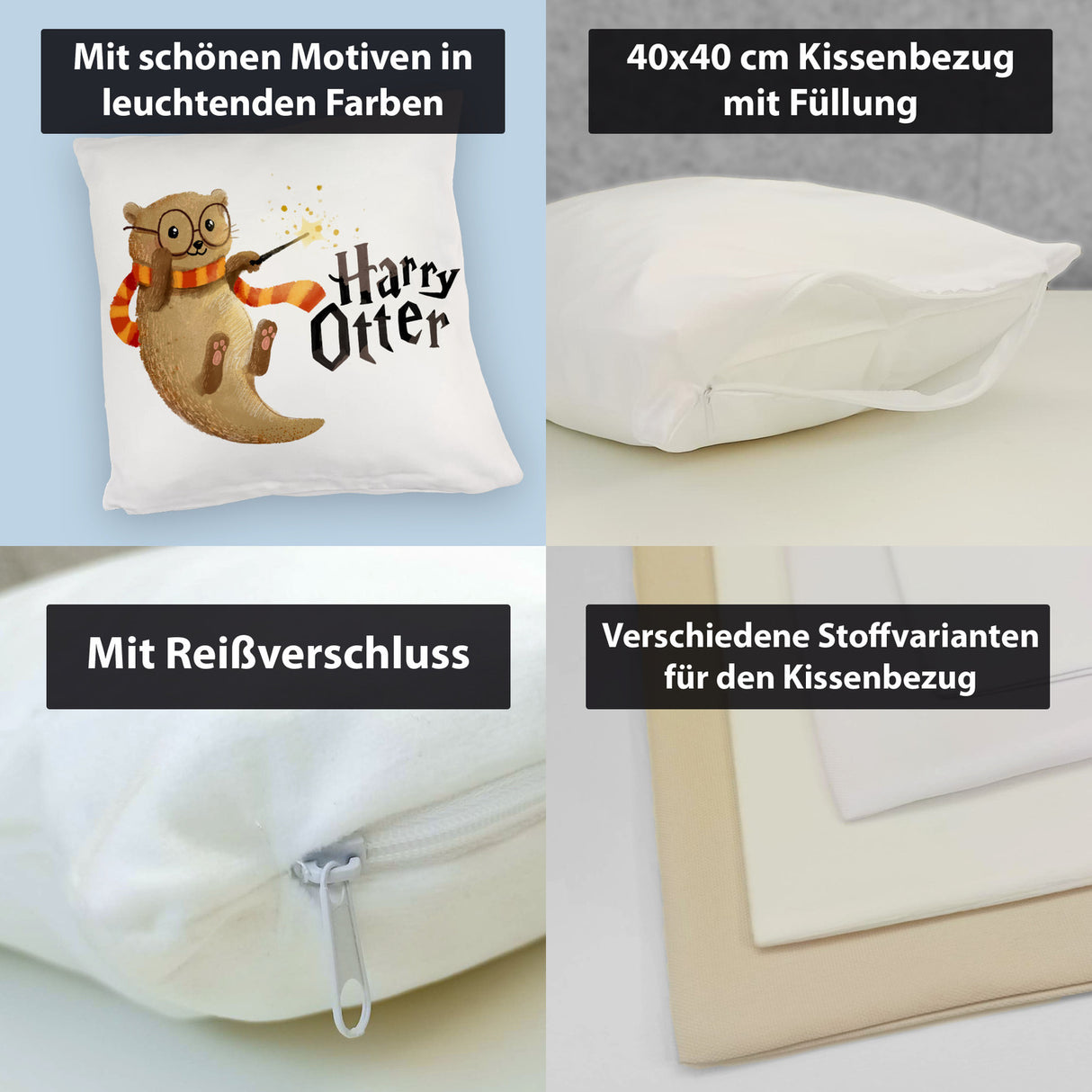 Harry Otter mit Zauberstab Kissen mit Spruch