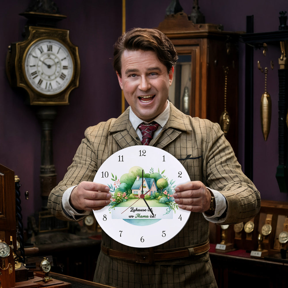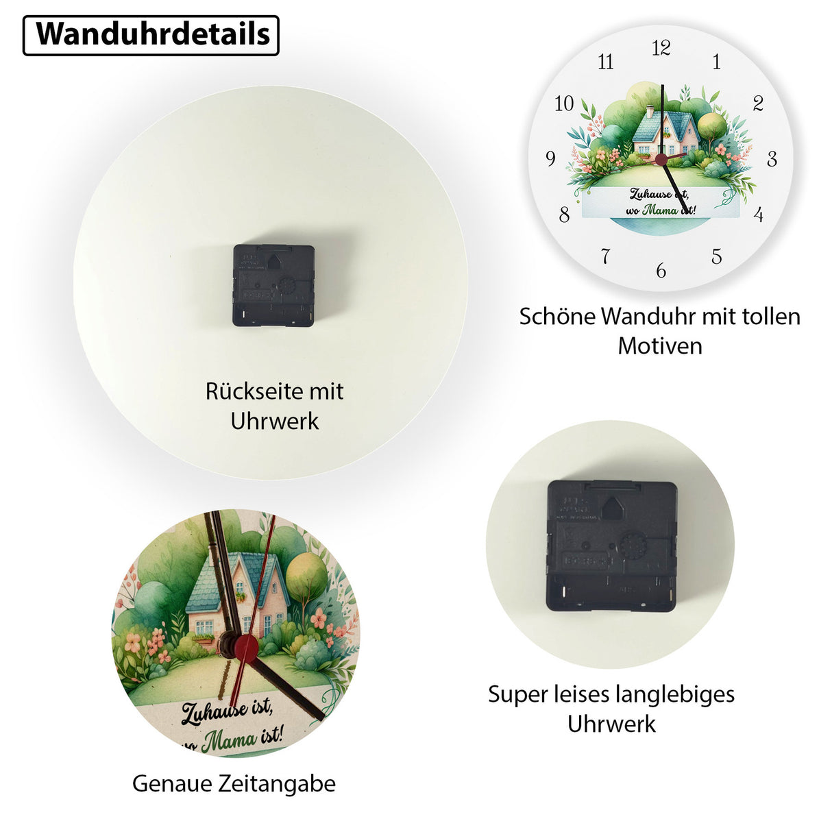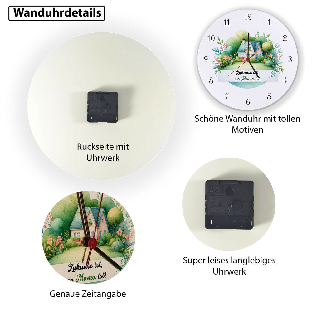 - 1x Häuschen im Grünen Wanduhr mit Spruch Zuhause ist wo Mama ist in der gewählten Variante