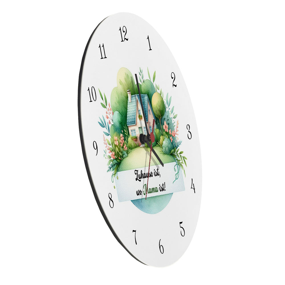 Häuschen im Grünen Wanduhr mit Spruch Zuhause ist wo Mama ist - 26,5 cm MDF ist auf Lager und wird versandt, sobald es wieder verfügbar ist
