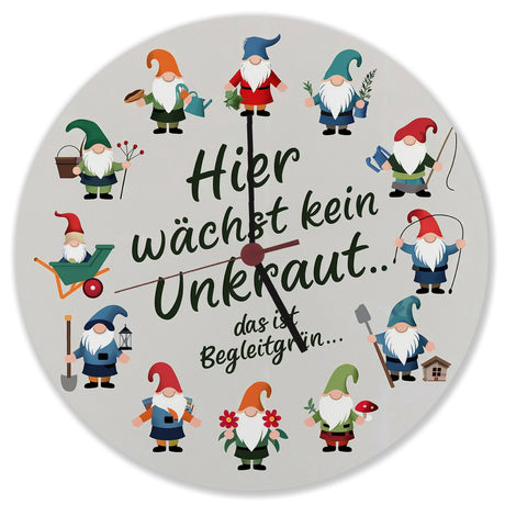 Gartenzwerge Wanduhr - Kein Unkraut nur Begleitgrün